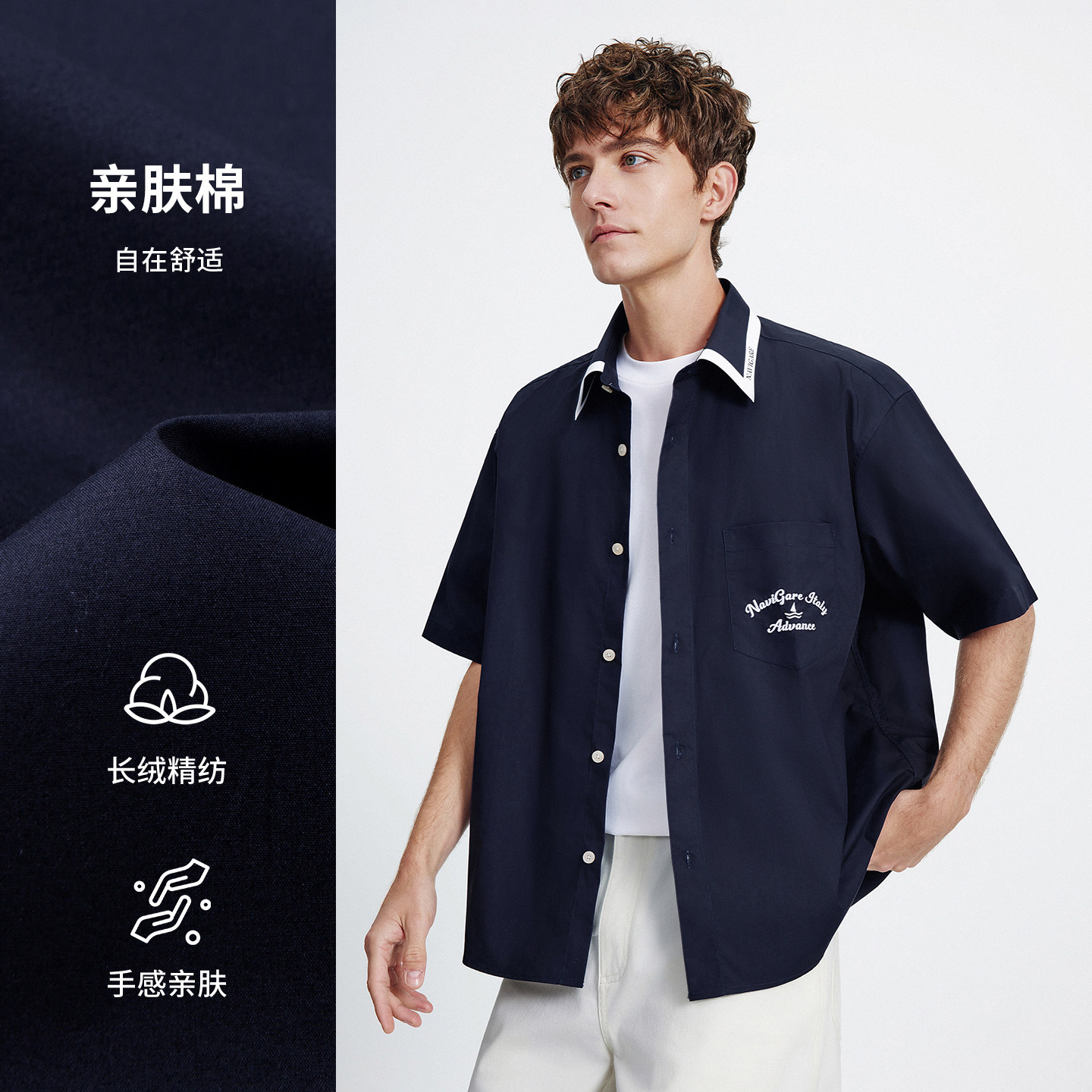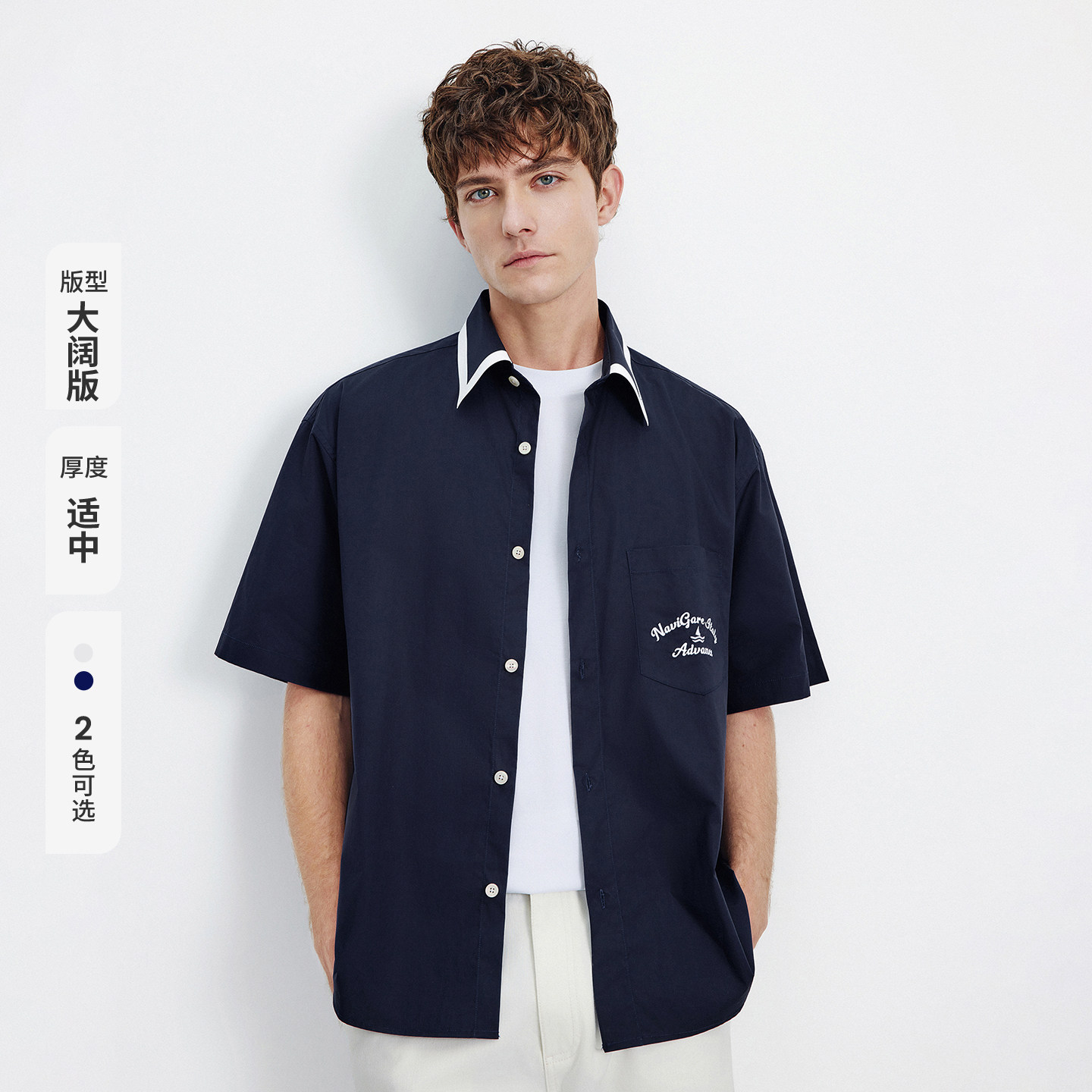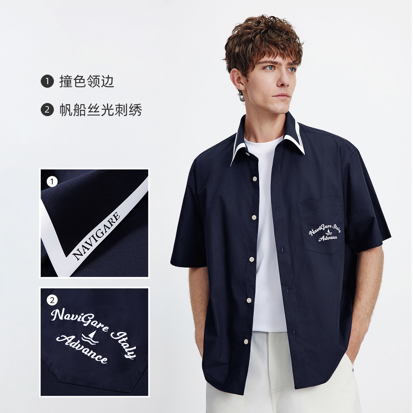 Navigare意大利小帆船宽松短袖棉衬衫男2026夏季新款休闲衬衣外套