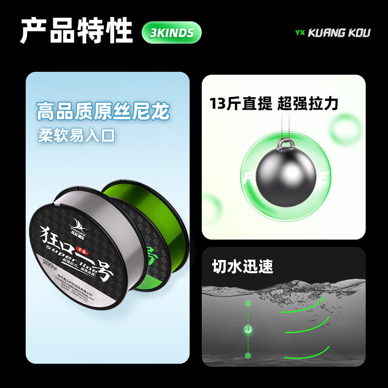德国进口鱼线主线子线正品尼龙原丝抗卷隐形路亚台钓专用超强拉力