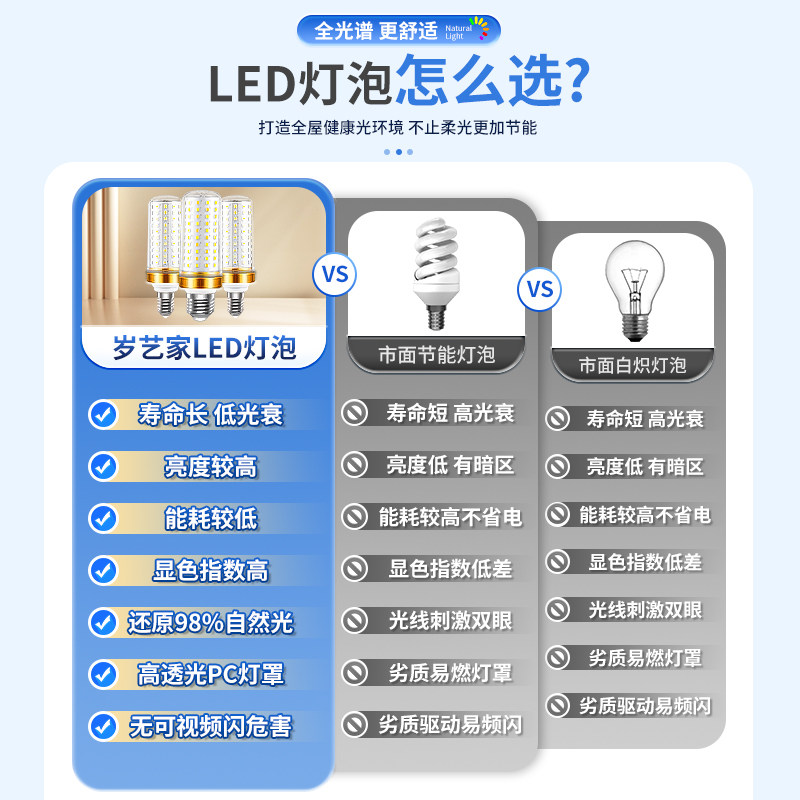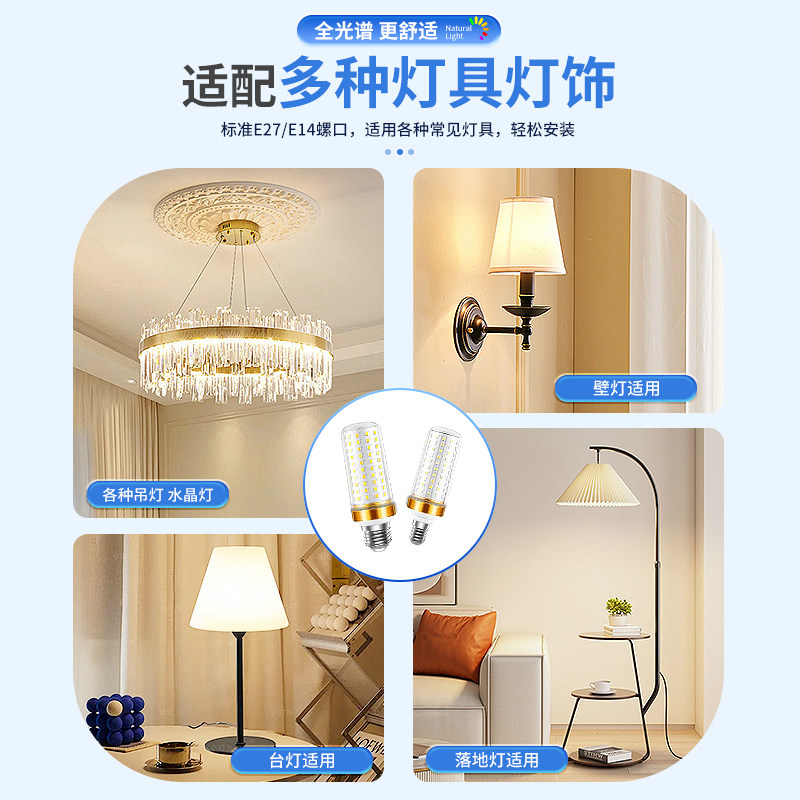 全光谱LED灯泡e27超亮节能灯2026吊灯照明e14螺口玉米灯30w三色