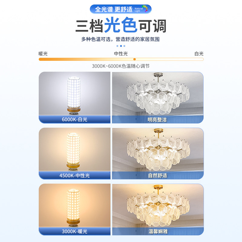 巨祥灯饰led长条灯泡超亮节能灯e27螺口灯条家用三色变光水晶吊灯