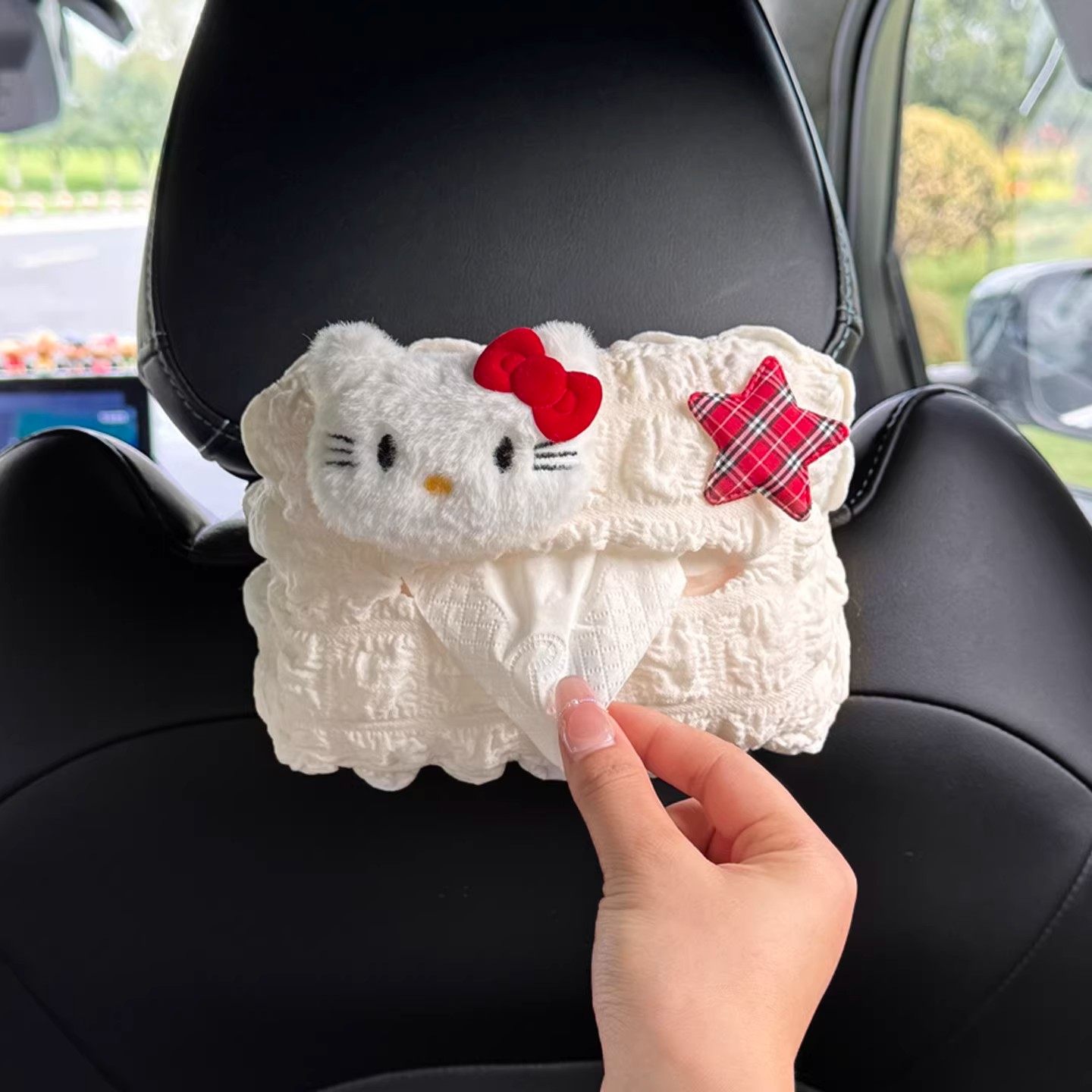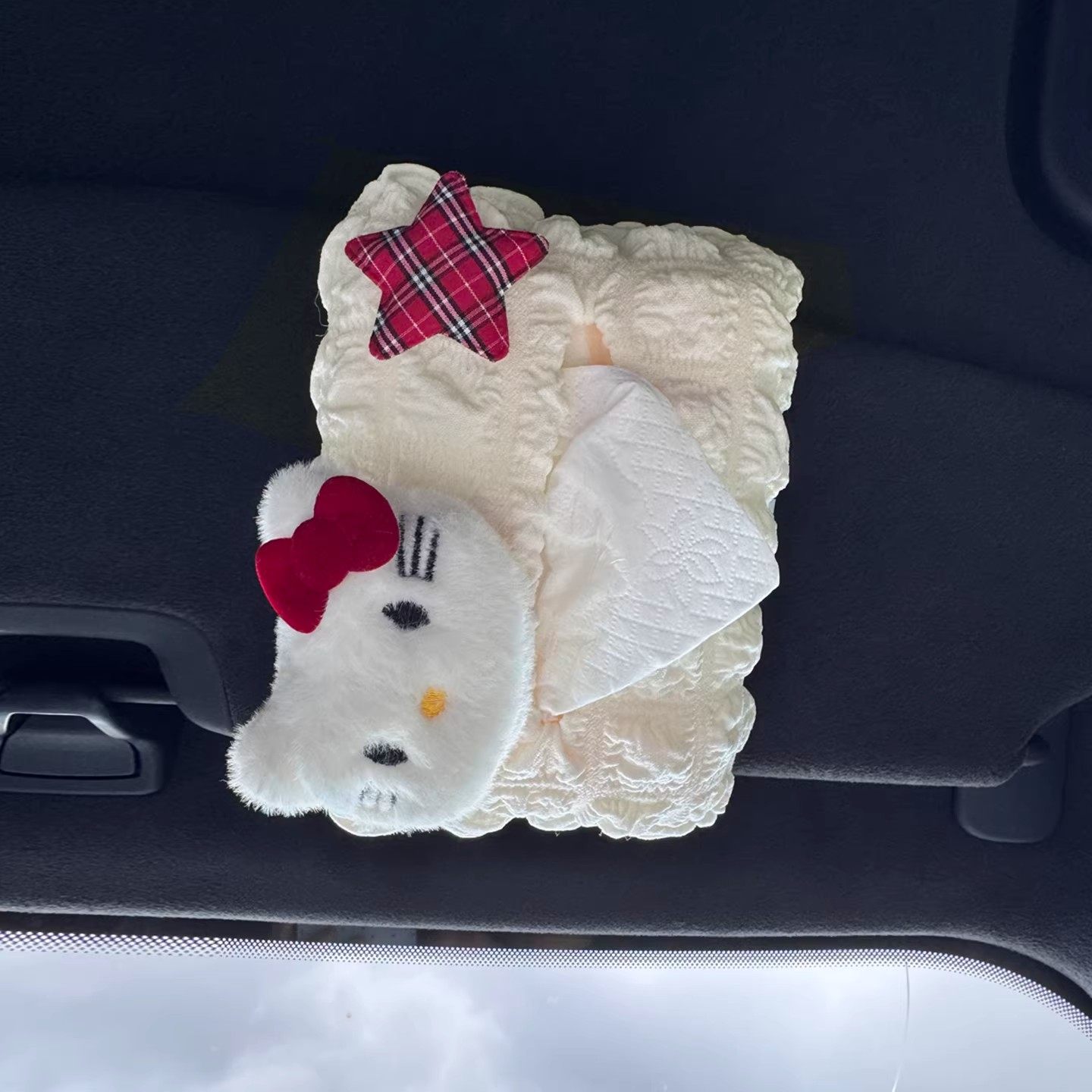 可爱kt车载纸巾盒创意卡通车内挂式纸抽盒新款高级汽车抽纸盒装饰