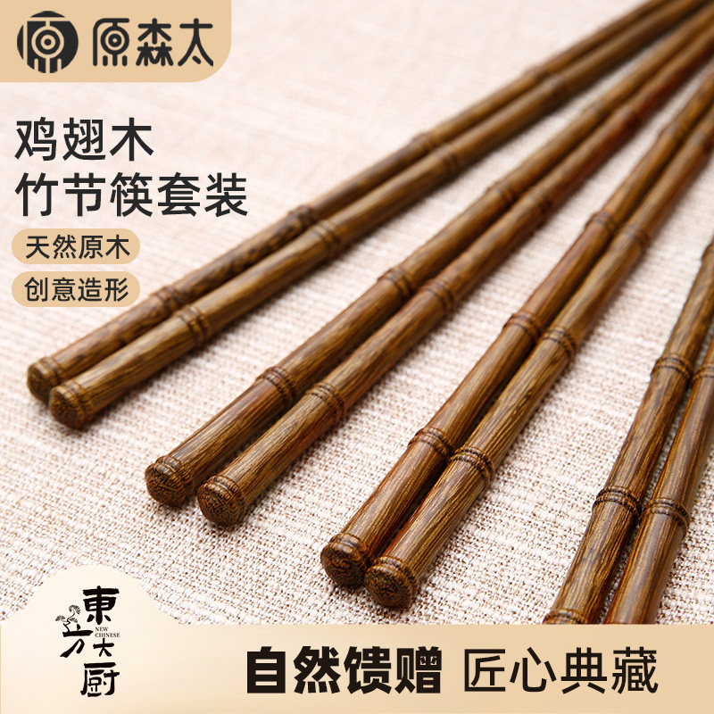 筷子原森太鸡翅木整木竹节家用高档抗菌防霉食品级防滑筷专人专筷