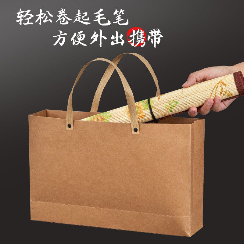 六品堂毛笔笔帘便携书法毛笔卷竹笔帘学生笔袋毛笔袋卷毛笔的帘子收纳卷帘收纳盒小学生子竹制袋子卷笔帘专用