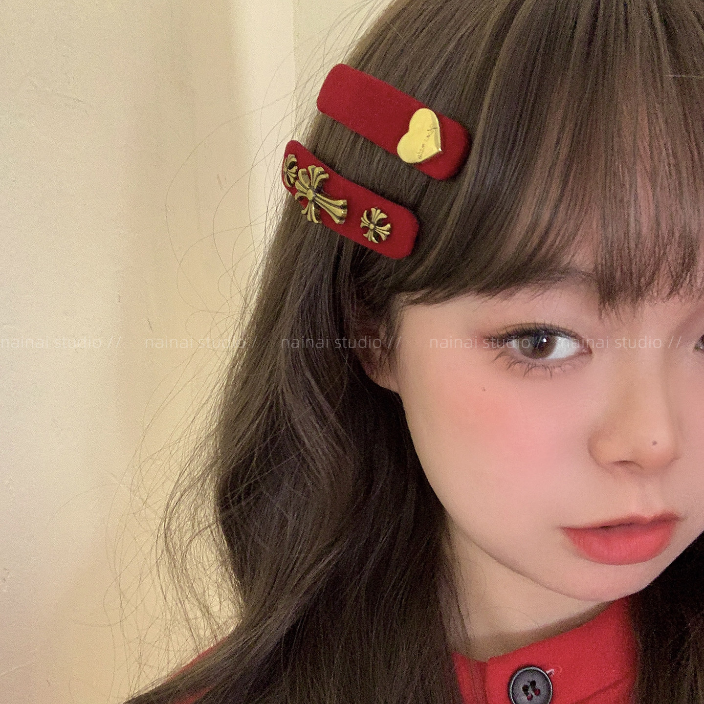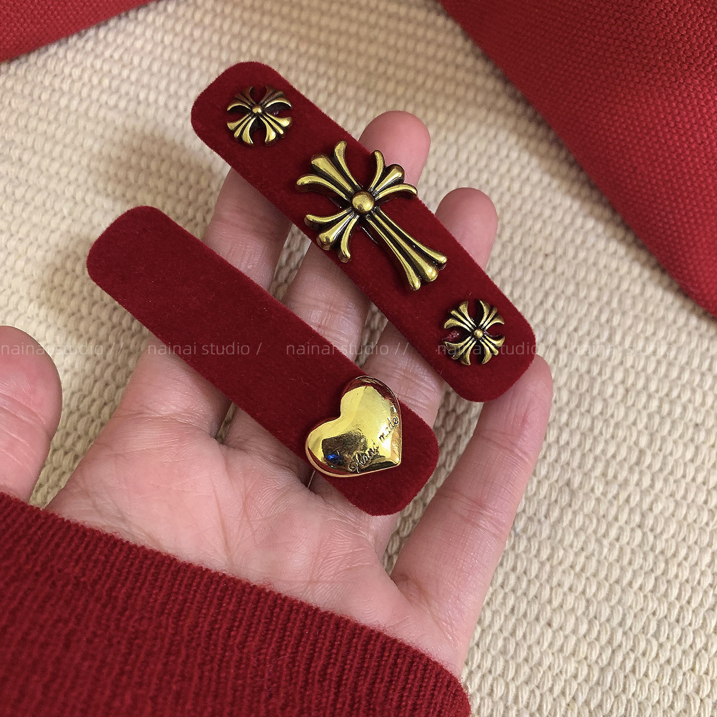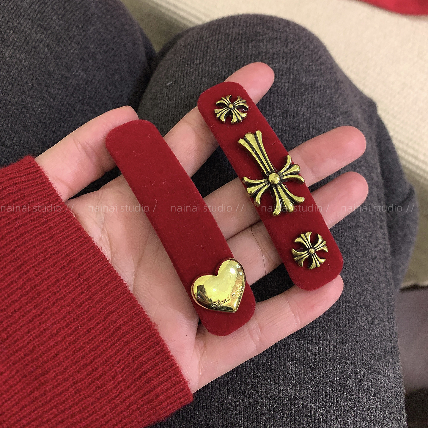 红色十字架BB夹~丝绒复古法式新年侧边夹爱心刘海夹发饰头饰女冬A