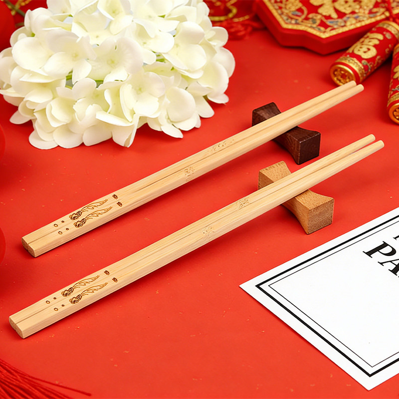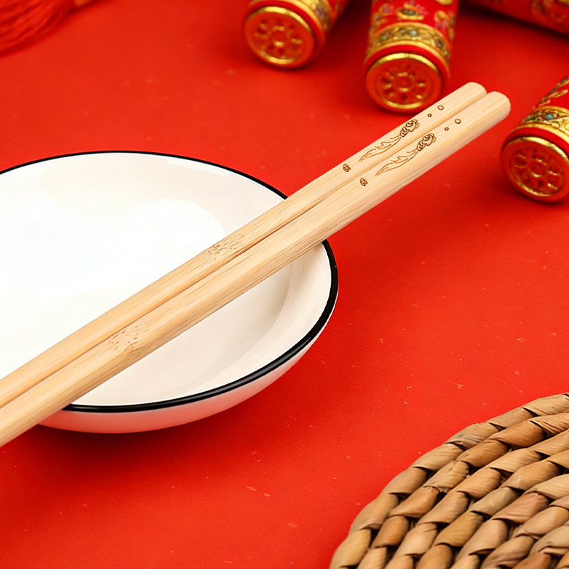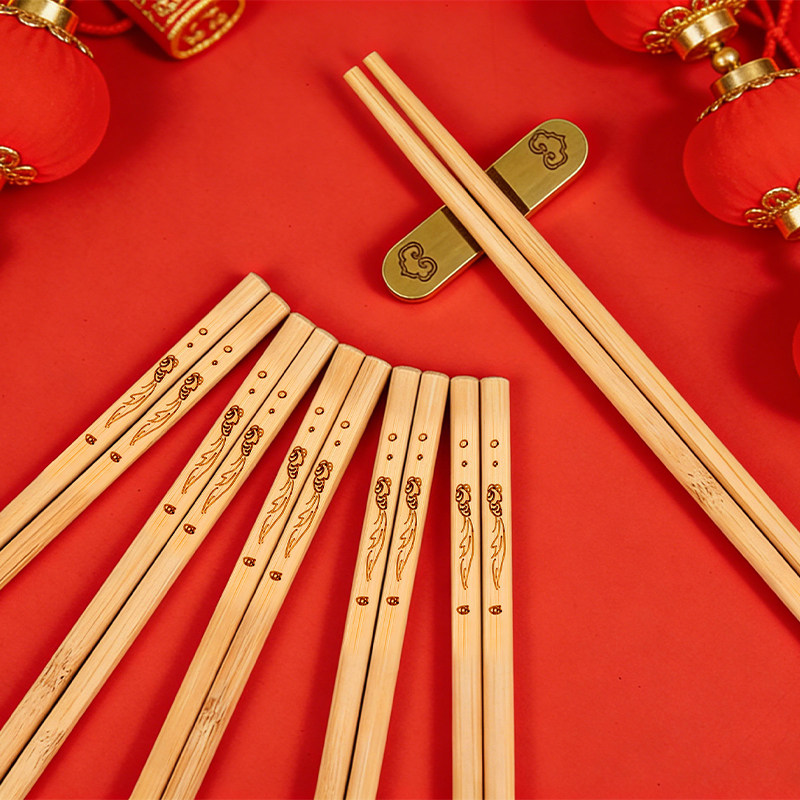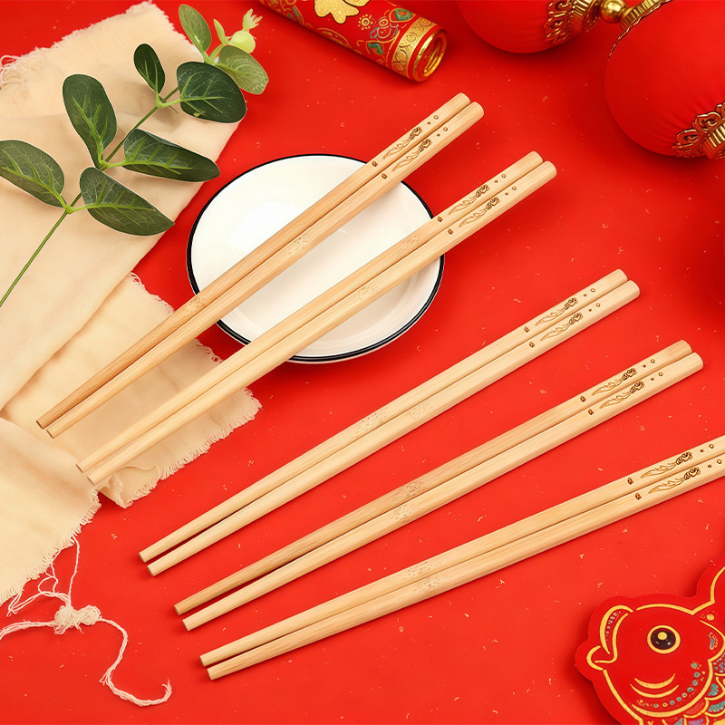 年年有余碳化雕刻加粗竹筷家用食品级健康无漆精致百货天然竹