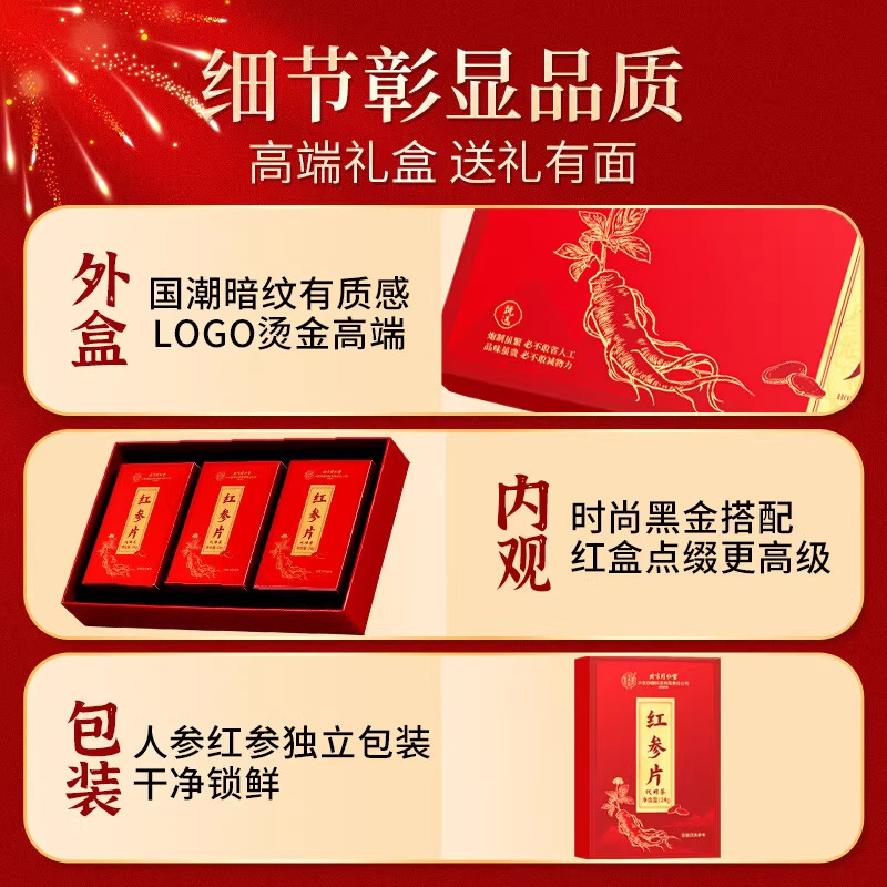 北京同仁堂内廷上用红参片人参礼盒高丽参正品药材送礼送长辈