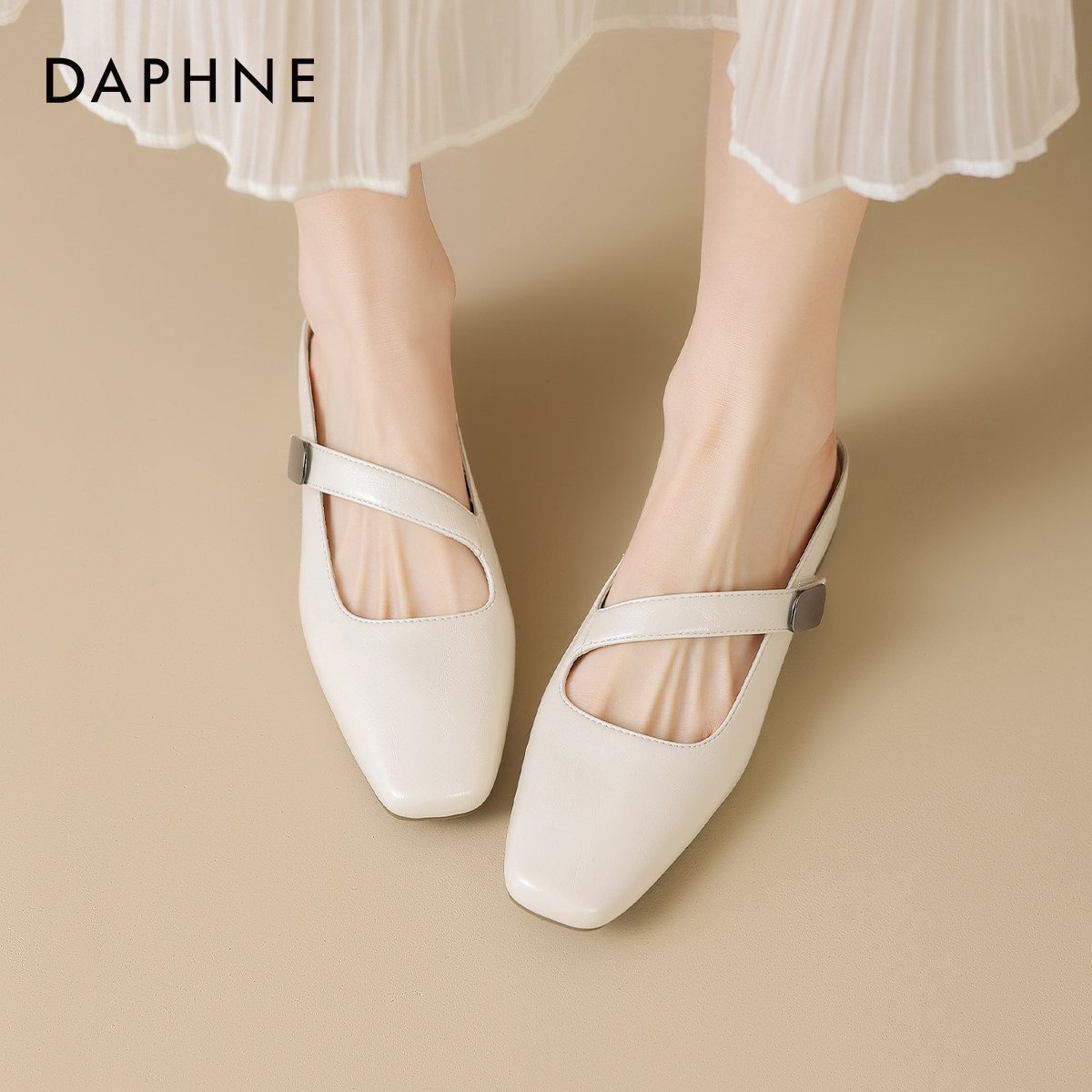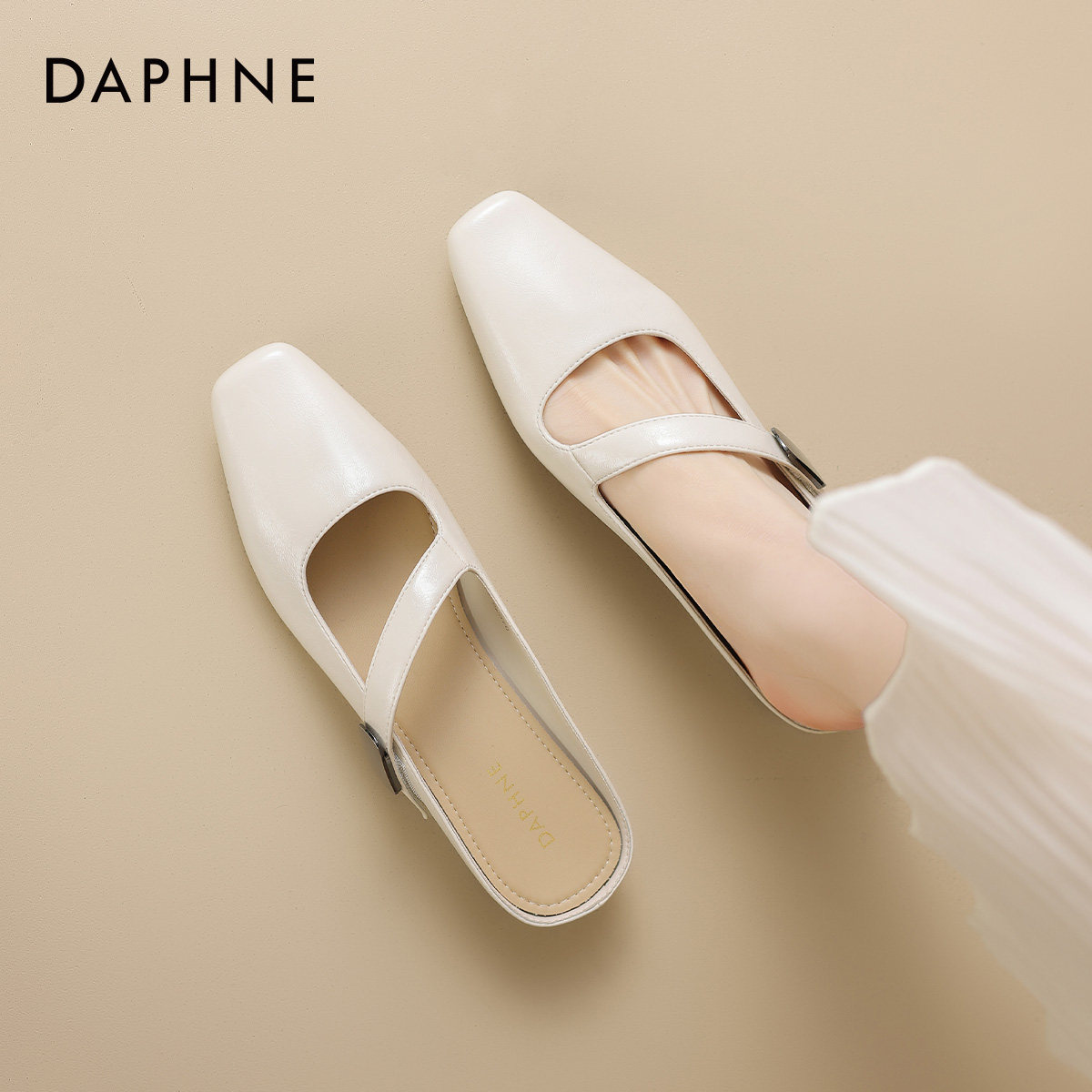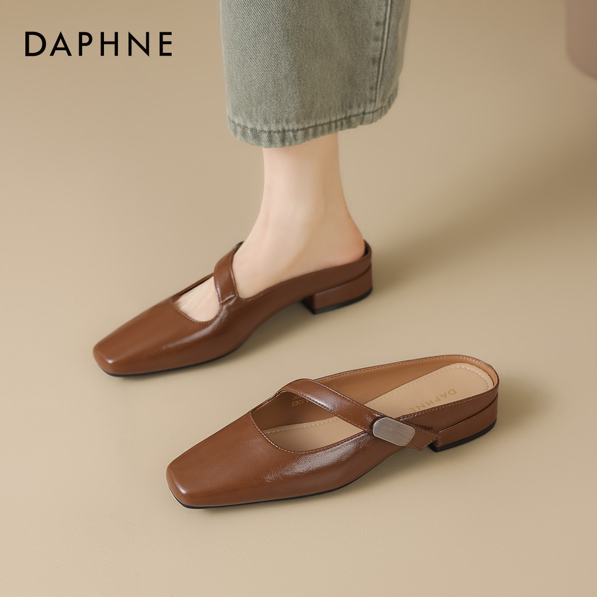 达芙妮包头拖鞋女夏季2025新款外穿半托穆勒鞋子平底单鞋懒人凉拖