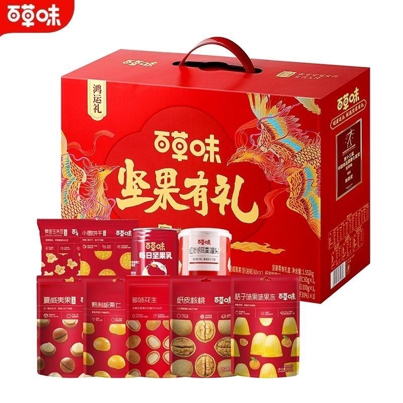 百草味坚果大礼包1260g混合干果礼盒每日坚果健康零食送礼送长辈