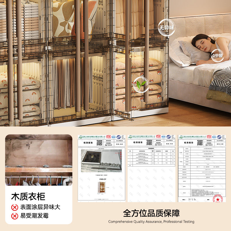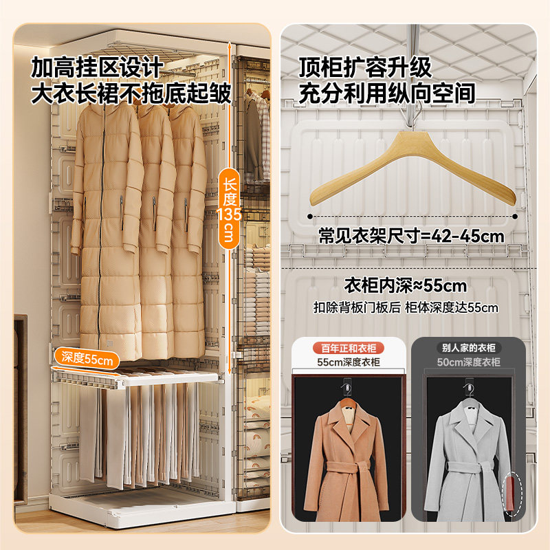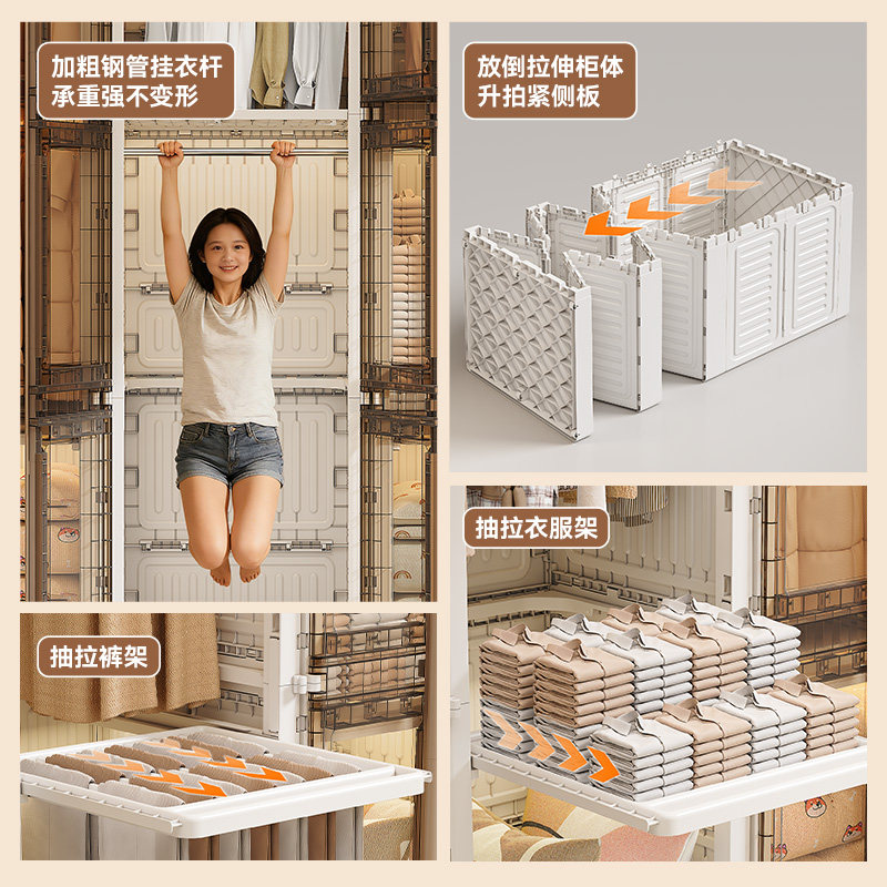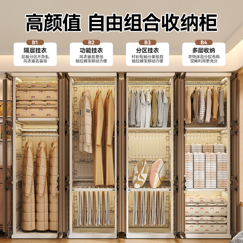 塑料简易衣柜家用卧室可移动大人儿童挂衣橱靠墙一体衣物收纳柜子