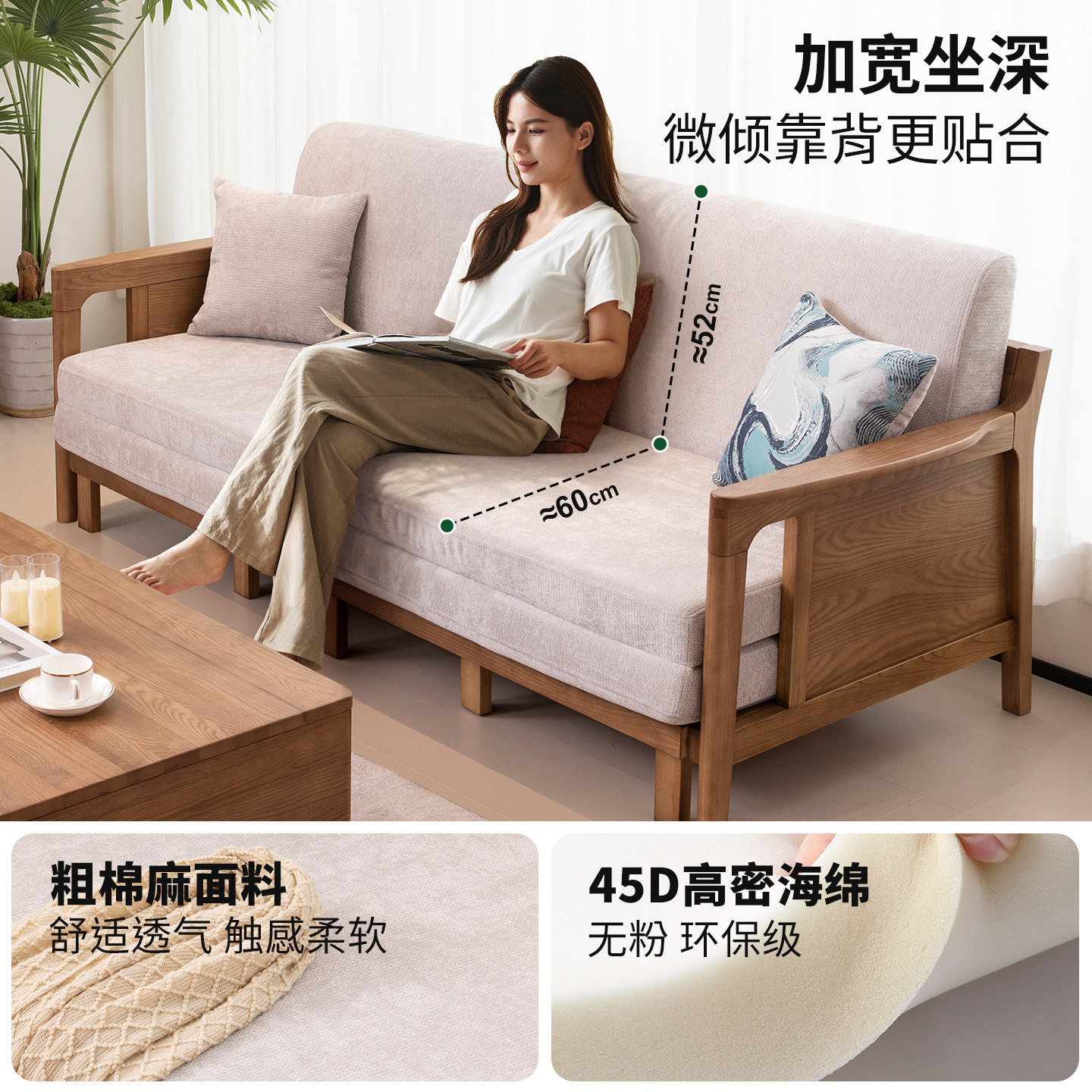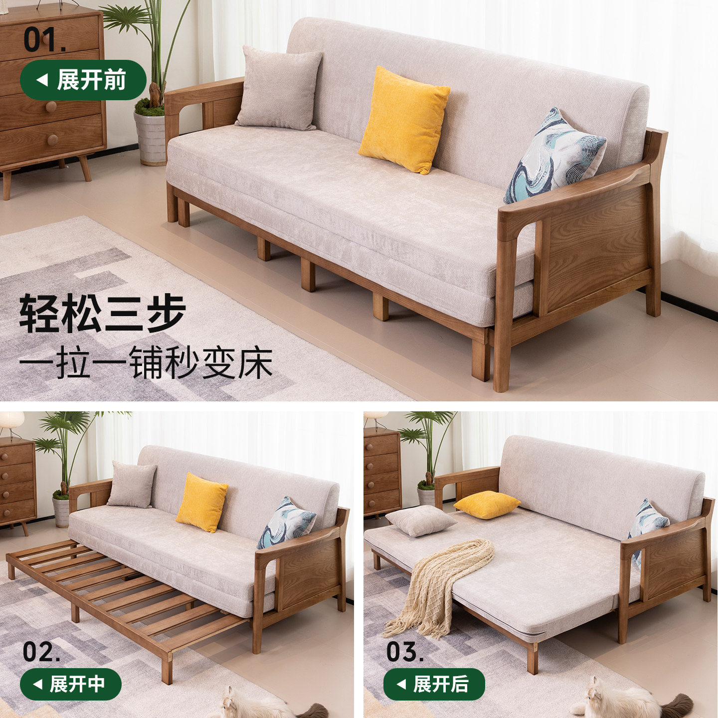 优尚雅轩沙发床白蜡木实木沙发床可拆洗两用客厅沙发床多功能沙发