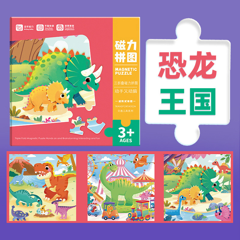 米粒鼠 儿童益智三折页磁力拼图77片【恐龙王国】