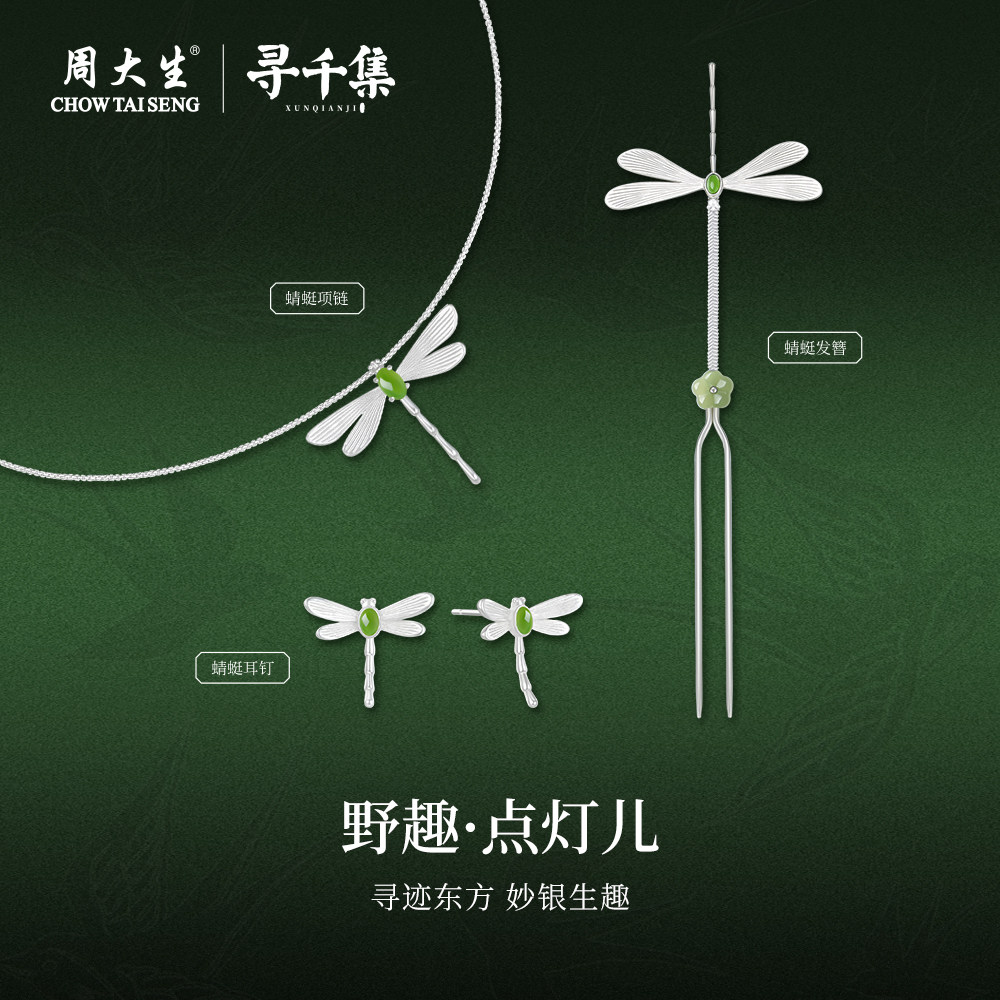 周大生X寻千集江寻千九月同款蜻蜓和田玉套链项链生日礼物送女友