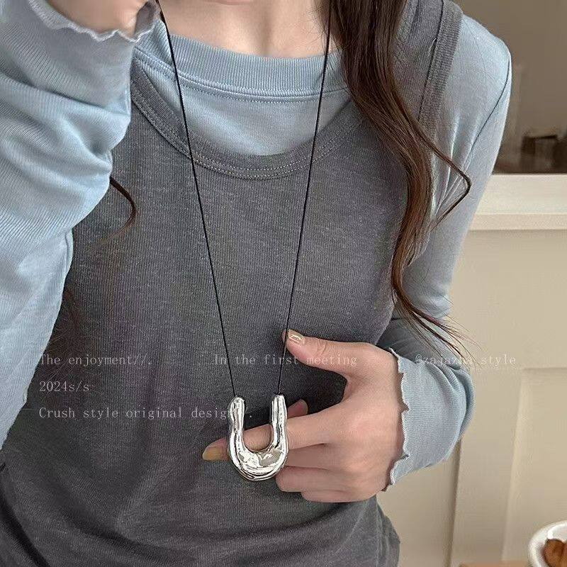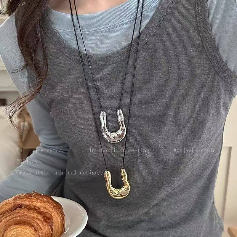 U形金属马蹄项链女小众气质高级秋冬毛衣链长款挂件网红配饰锁骨