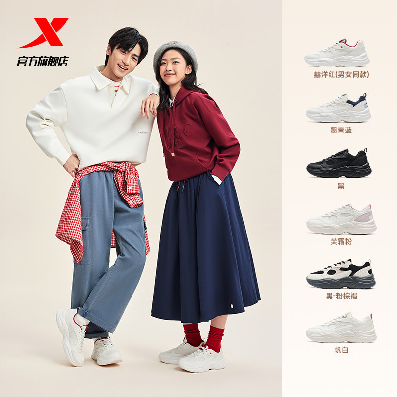 王鹤棣同款丨特步巴斯克2休闲鞋女复古老爹鞋增高运动鞋男鞋棉鞋