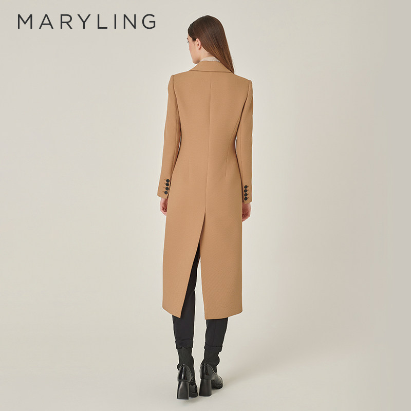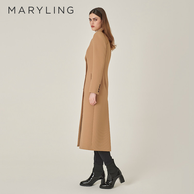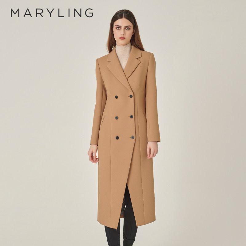 MARYLING玛俪琳秋季新品驼色西装领双排扣大衣外套A1EGW93080
