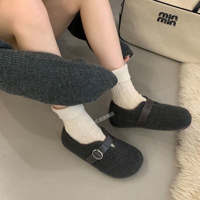 厚底加绒毛呢勃肯鞋女款2025新款秋冬爆款灰色百搭单鞋内增高鞋子