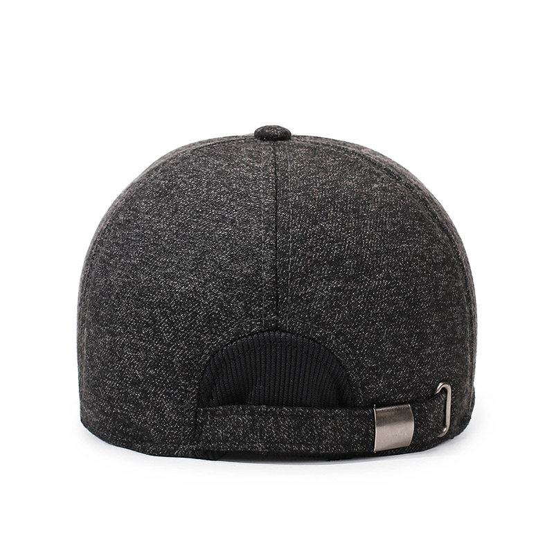 中老年毛呢棒球帽男士新款冬季款加厚保暖棉帽鸭舌帽帽檐黑色防寒