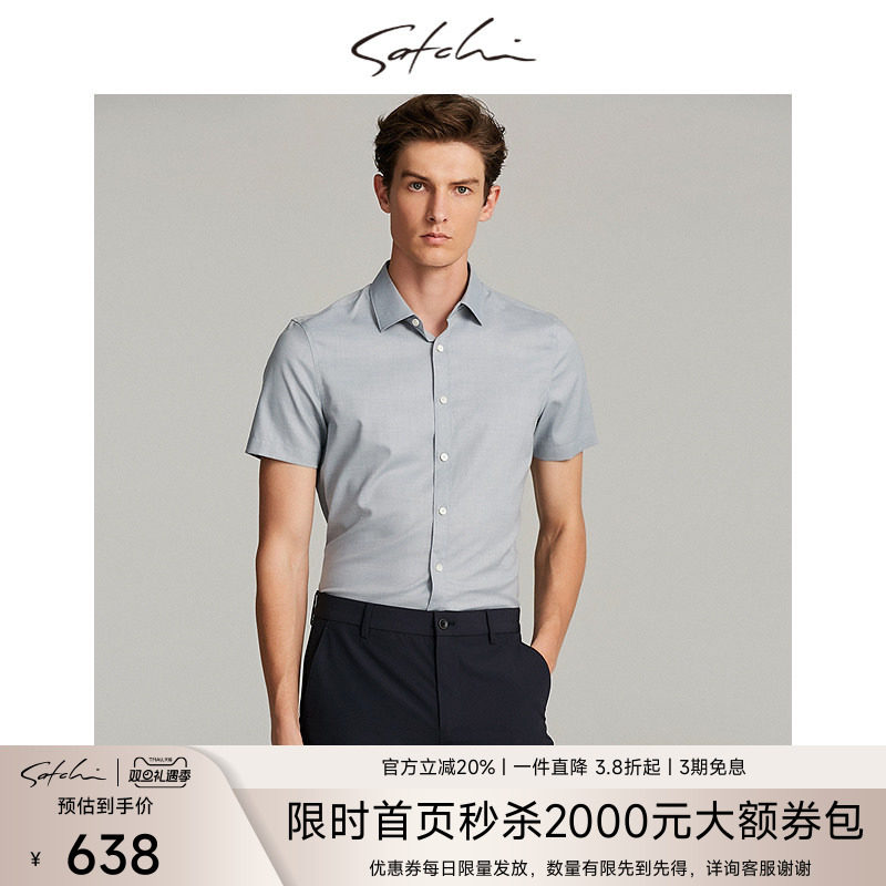 [易打理]SATCHI沙驰男装男士短袖衬衫夏季新款商务休闲高端衬衣男