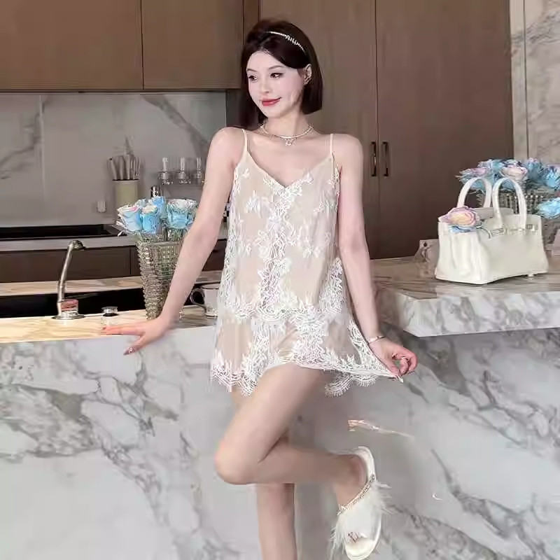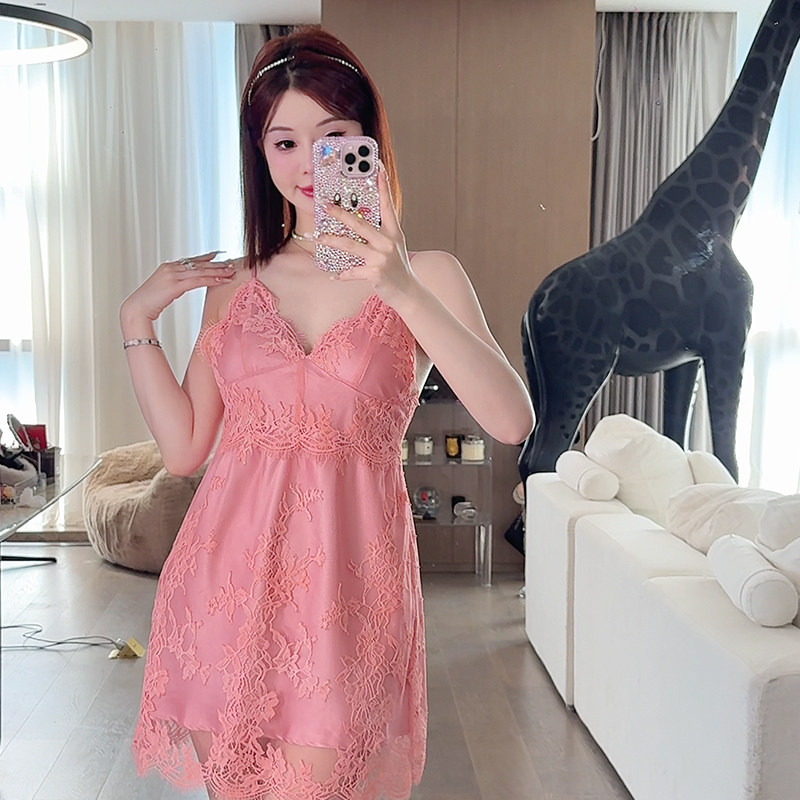 DIMDEVL汀黛25年新款睡衣睡袍女士伊丽莎白粉色蕾丝纯欲家居服