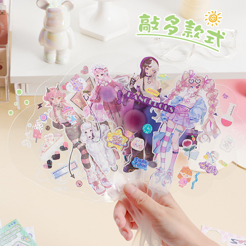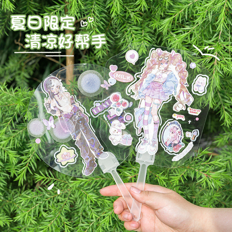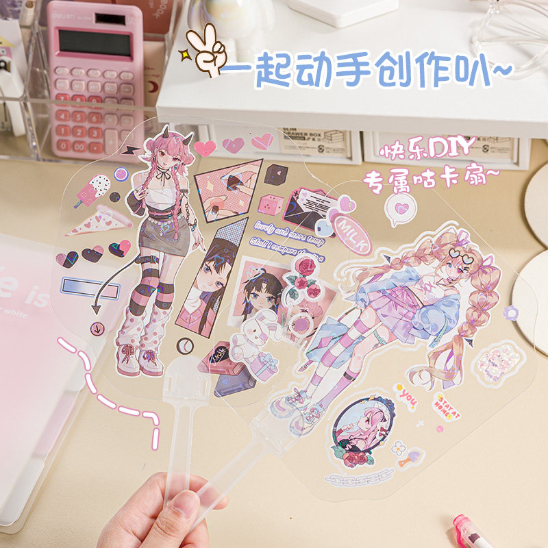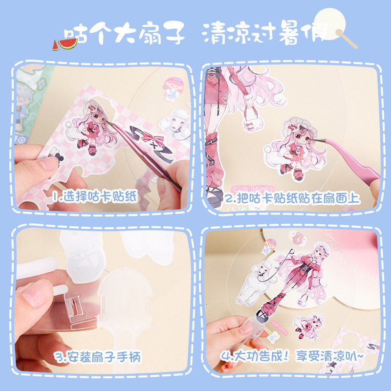 三年二班 咕卡扇子diy女孩夏天随身携带学生手柄团扇手工套装咕卡扇大号可爱手摇透明扇古卡贴纸小圆扇K