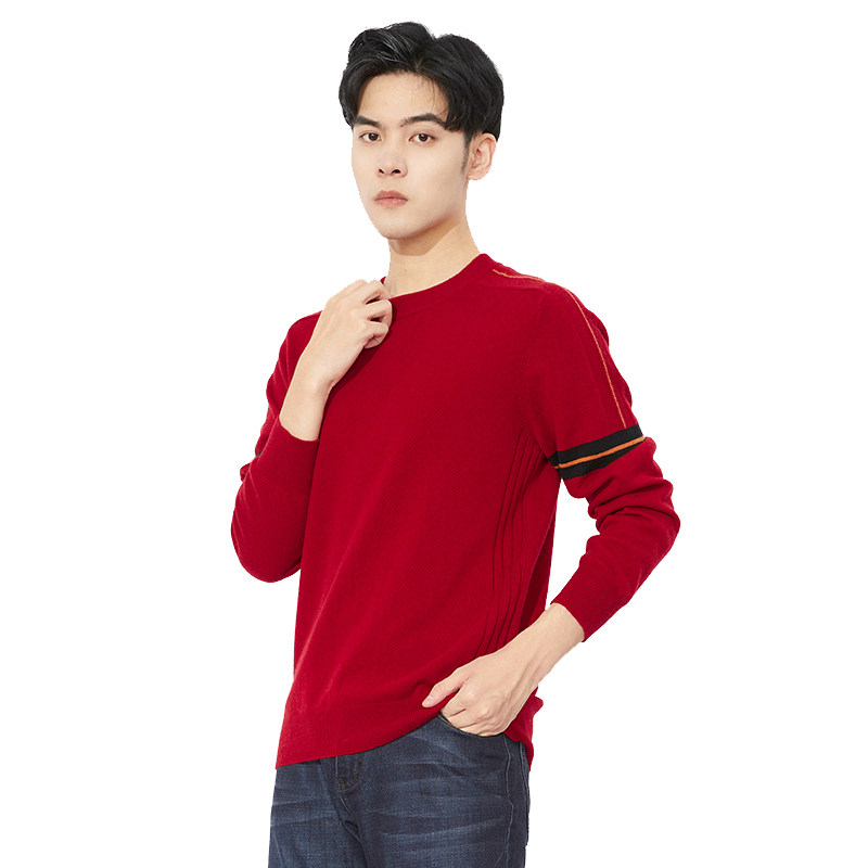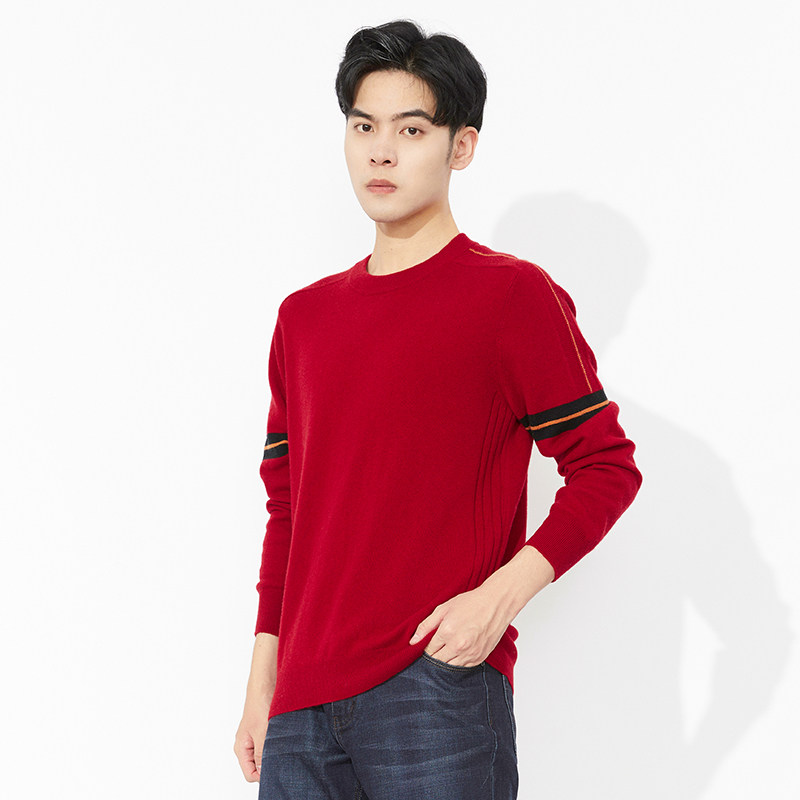 恒源祥100%羊绒衫男士商务休闲圆领毛衣保暖套头打底针织衫秋冬季