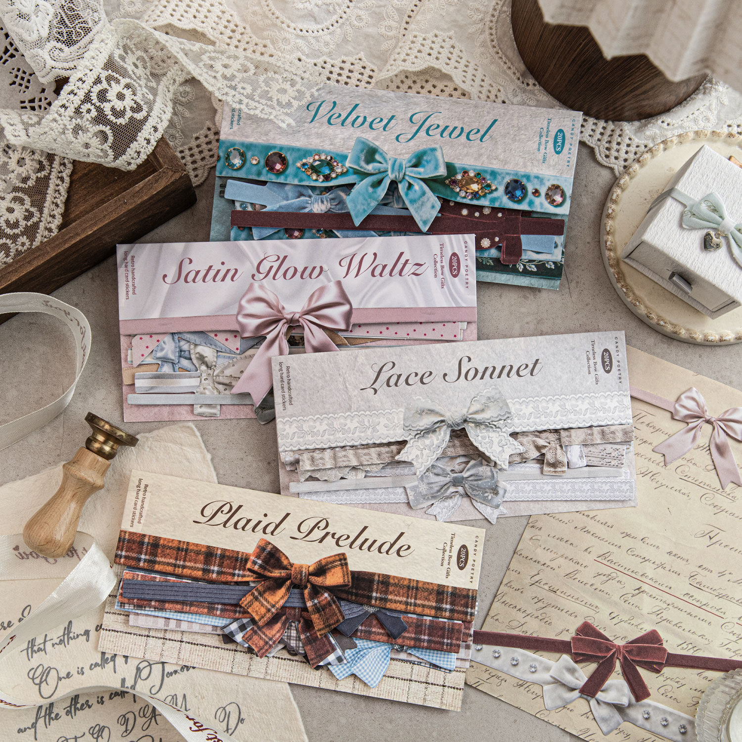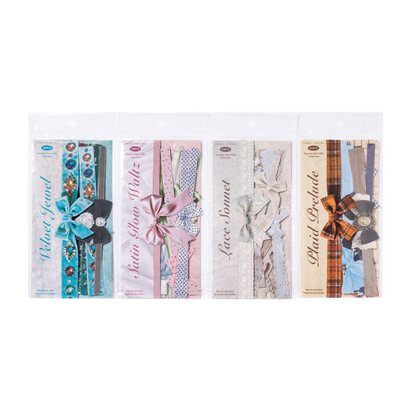 时光饰礼系列长条硬卡贴纸20张 复古蝴蝶结手账痛包diy场景装饰贴