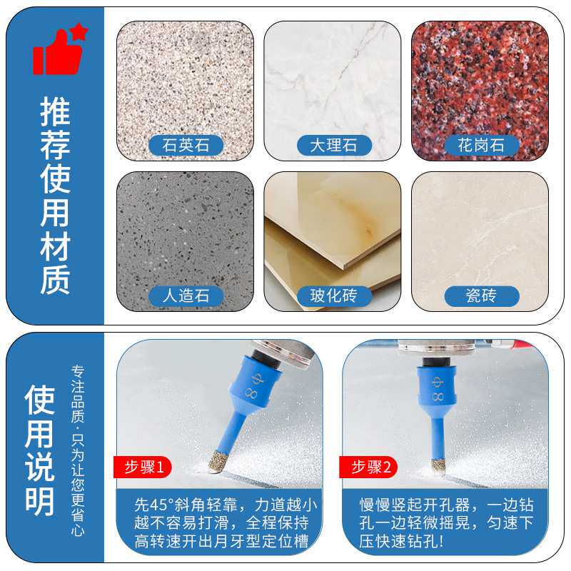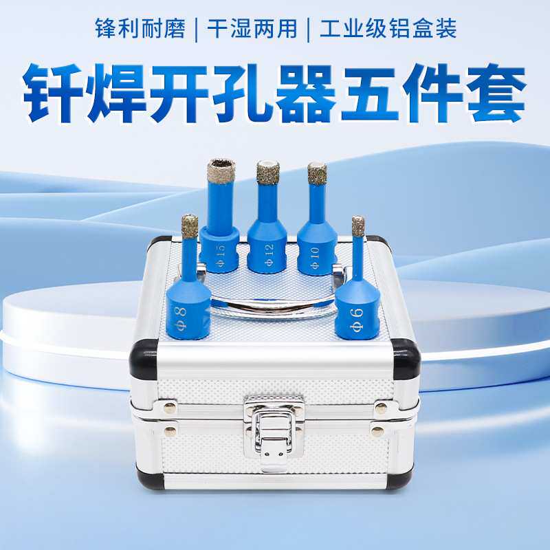 5件套M14钎焊瓷砖开孔器钎焊钻头全瓷锯齿花岗岩玻化砖大理石开孔