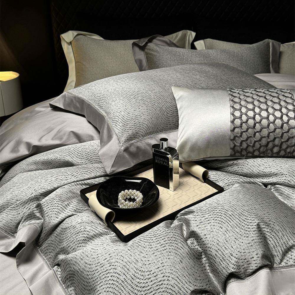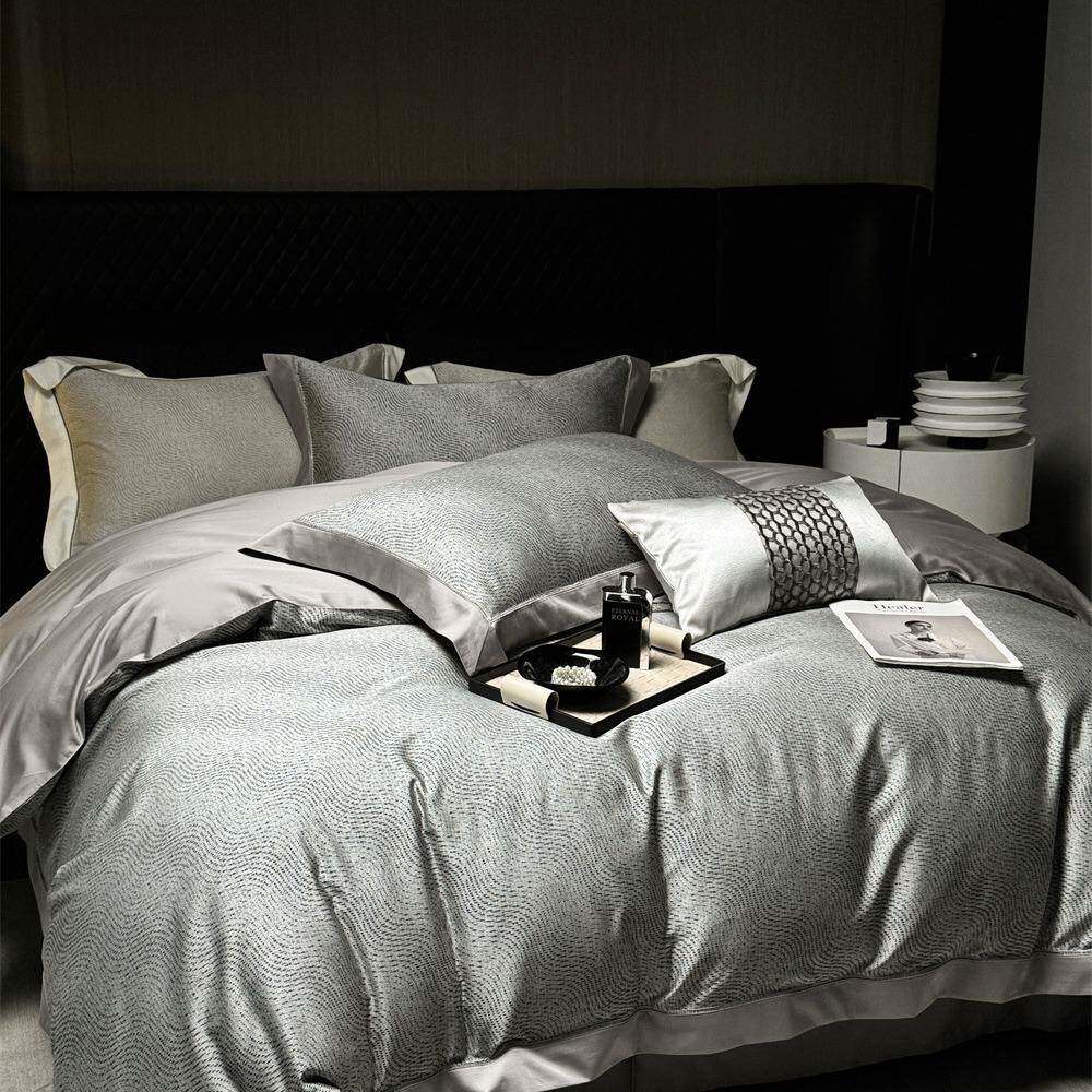 柔软亲肤春夏60支天丝棉色织提花四件套 轻奢极简高端床品套件