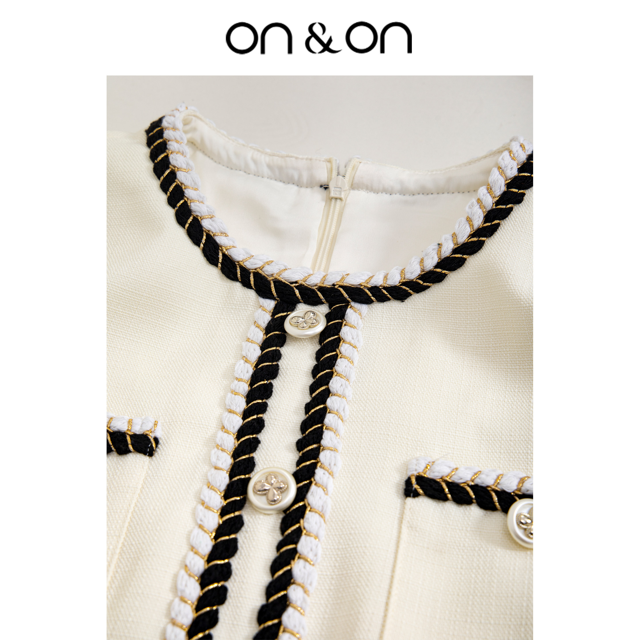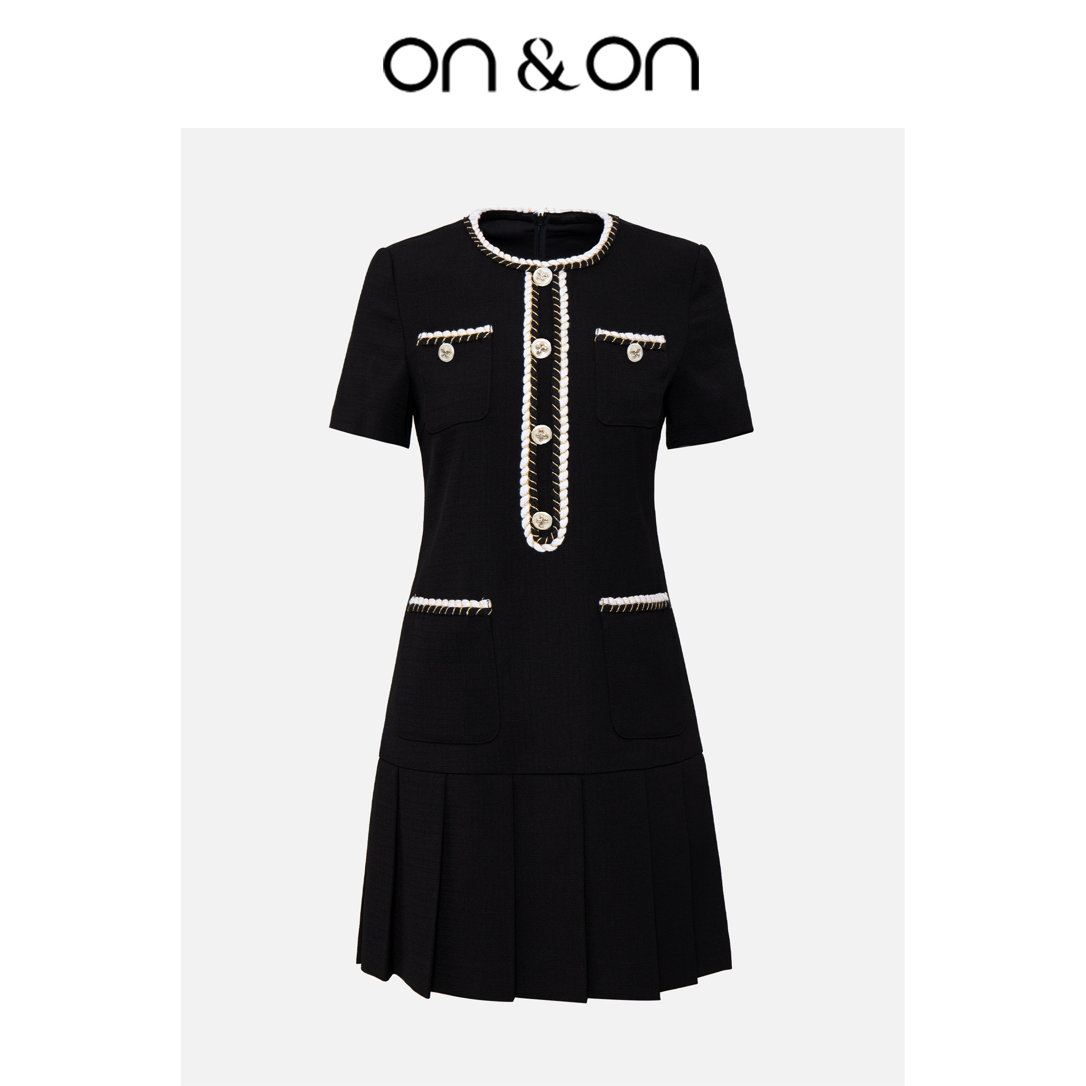 ON&ON/安乃安夏季新款醋酸编织甜美显瘦显气质百褶小香风连衣裙