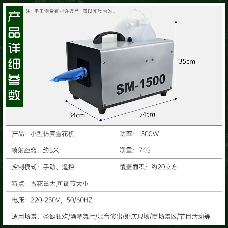 小型雪花机1500w人工仿真便携式商用舞台婚礼婚庆下雪喷雪造雪机