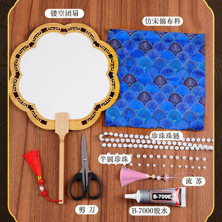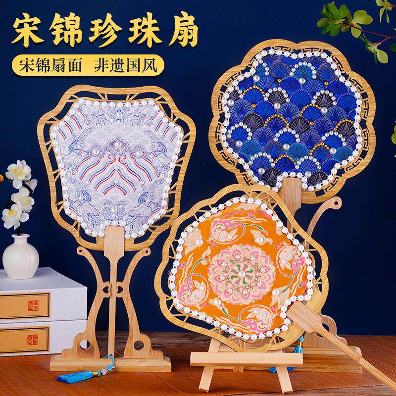 珍珠扇子diy材料包古风团扇织锦扇团建活动沙龙礼物
