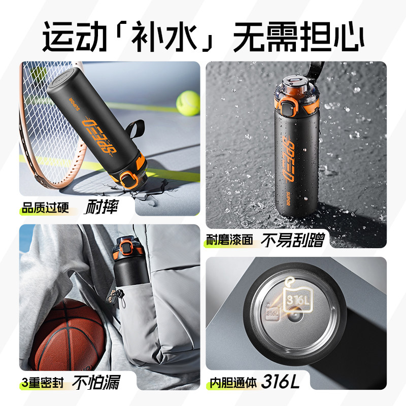 苏泊尔大容量运动保温杯男款户外水杯子316L不锈钢便携登山旅行壶