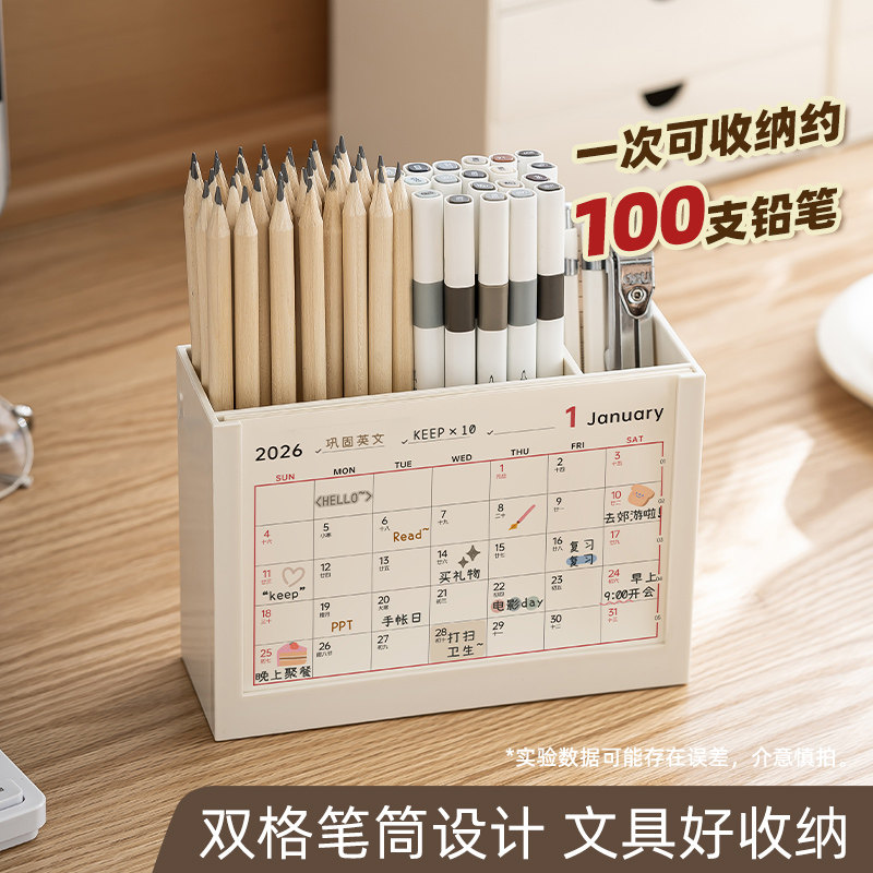 两格笔筒大容量收纳#不占空间#日历卡备忘录