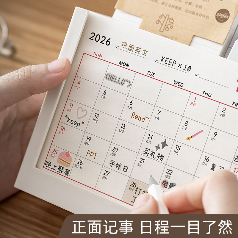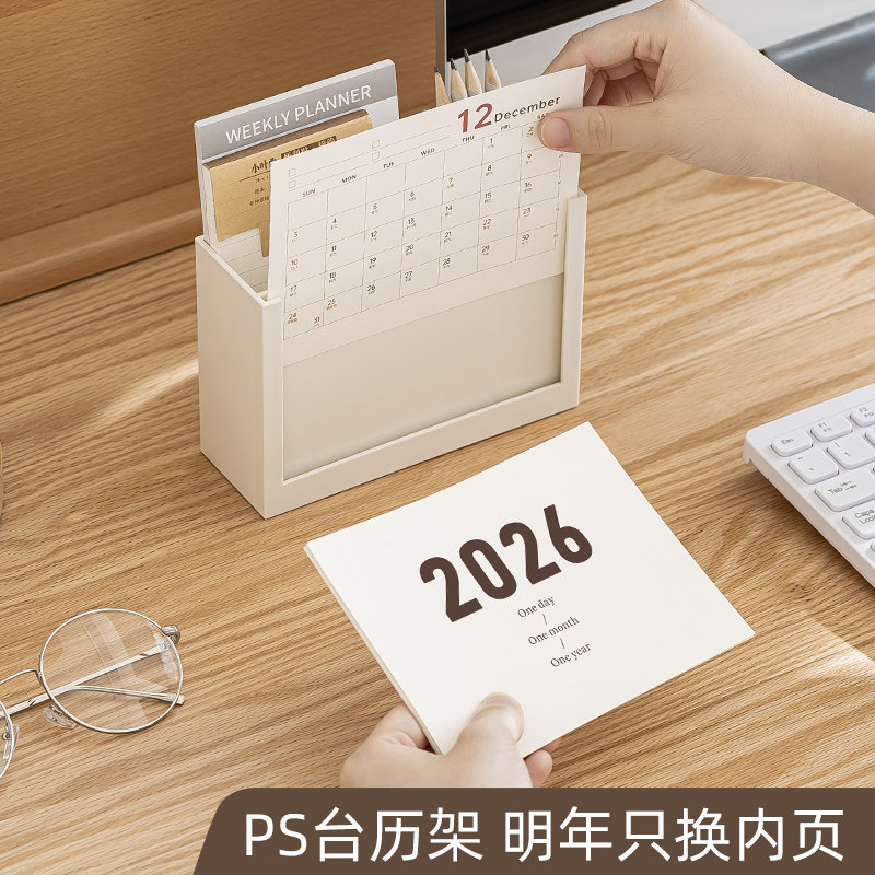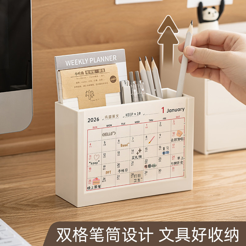 创意笔筒台历二合一办公室桌面摆件2026年活动日历书桌简约大容量收纳盒学生记事打卡表高考倒计时初中生专用