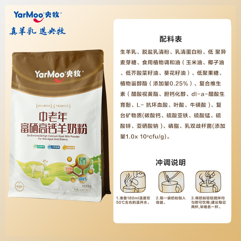 央牧中老年富硒高钙羊奶粉零添加蔗糖全脂奶粉成人条装营养粉400g