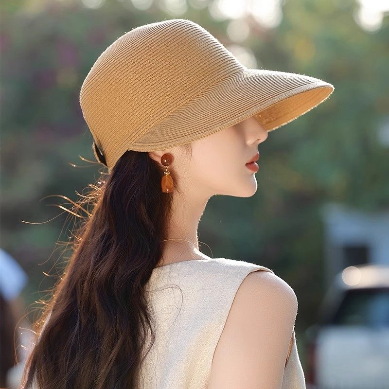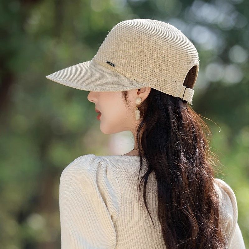 草帽女春夏季百搭显脸小时尚草编遮阳鸭舌帽子户外出游防晒太阳帽
