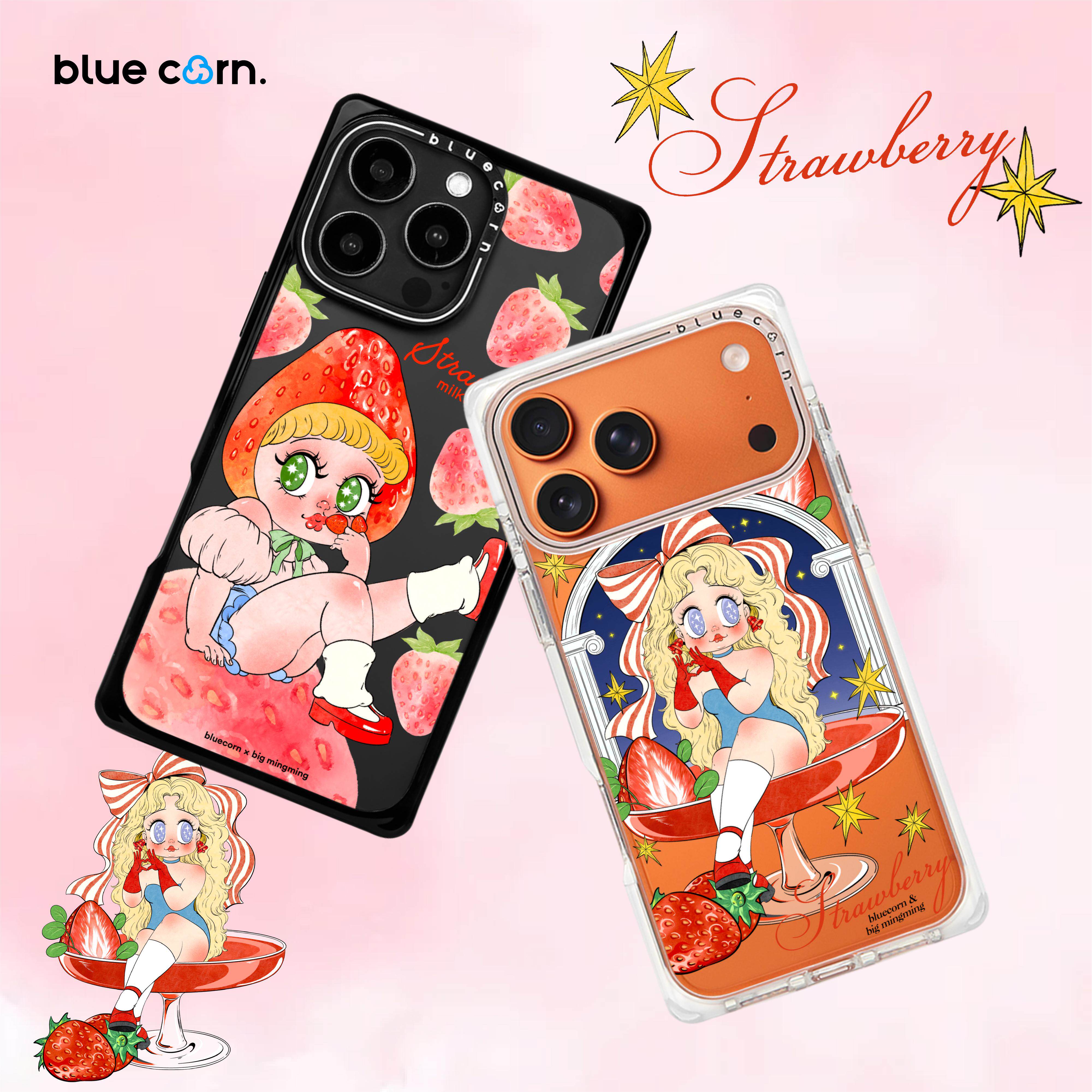 【bluecorn】蓝色苞米艺术家草莓女孩 草莓鸡尾酒适用于iPhone 17/16/15PRO/MAX magsafe镜面磁吸防摔手机壳