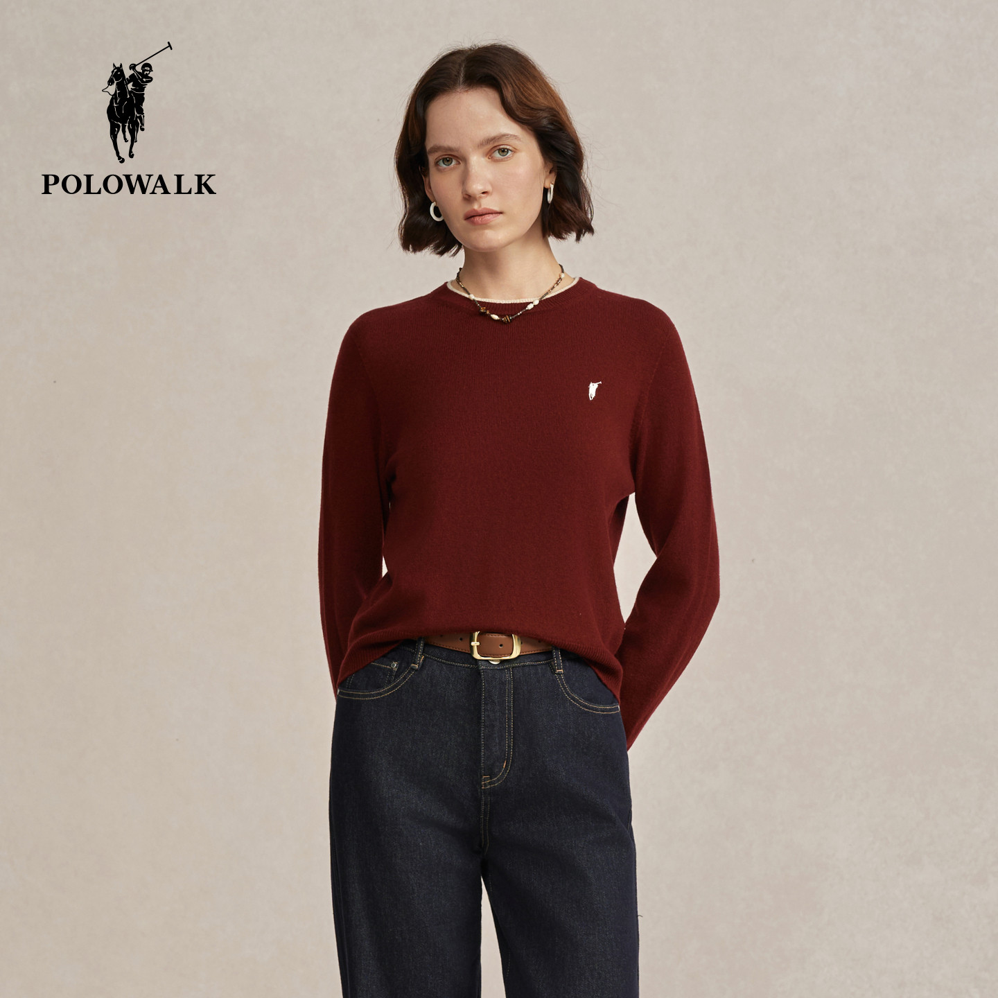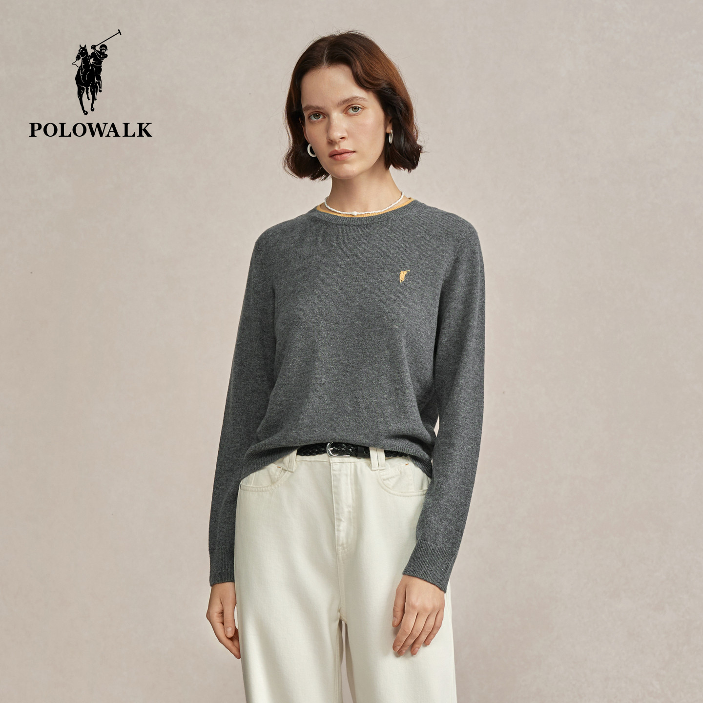 【100%绵羊毛】POLOWALK女式羊毛衫2025冬季新品百搭圆领打底衫女