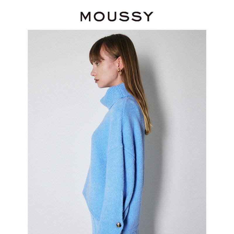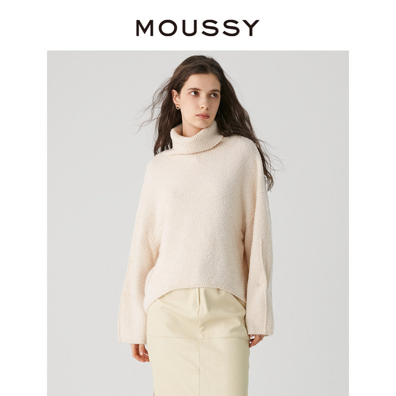 MOUSSY 简约设计高领软糯慵懒感落肩袖套头毛衣女010FAH70-6870