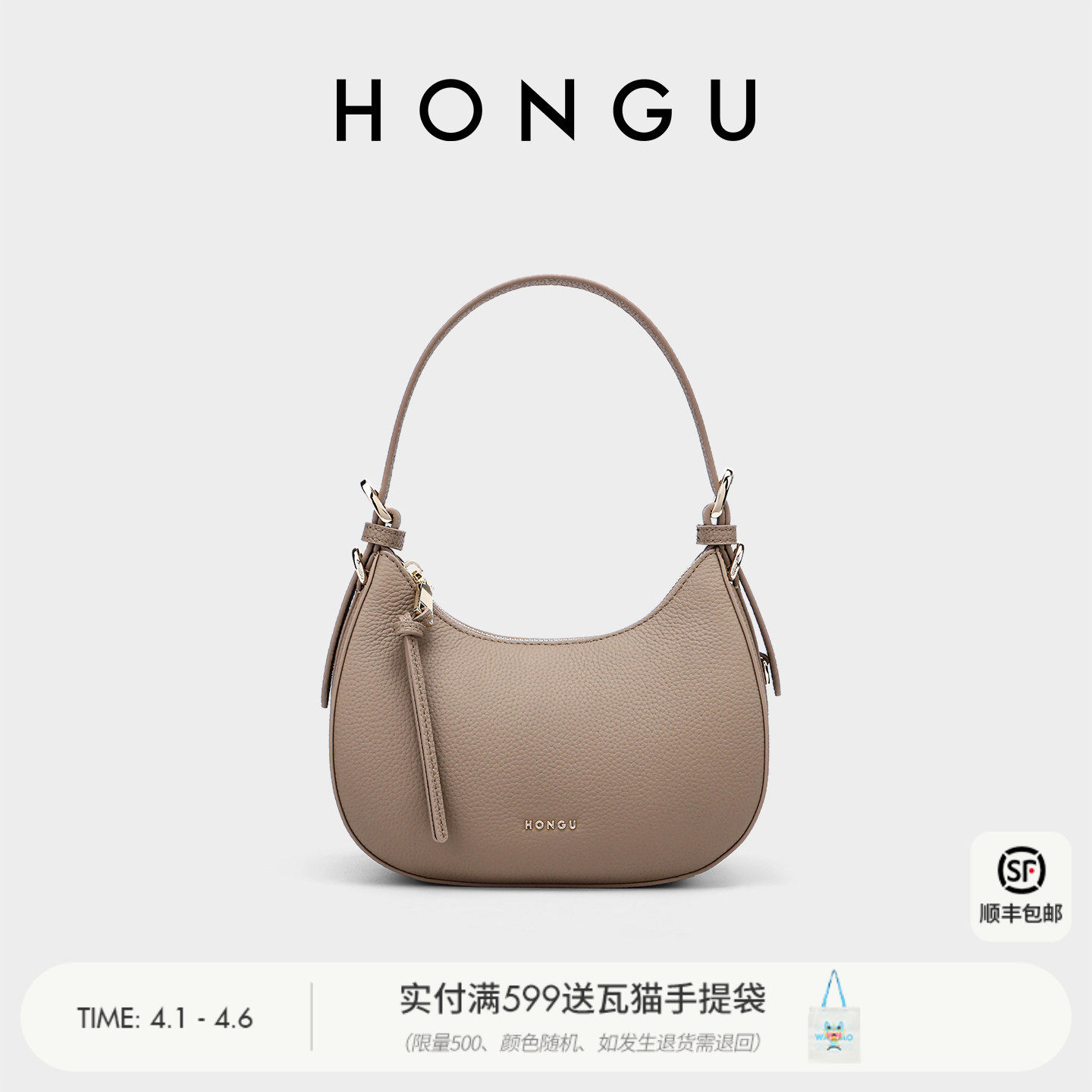 红谷包包女式新款真皮单肩腋下包法式复古月牙包高级感手提女士包