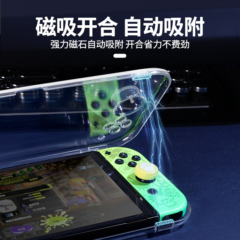 良值(IINE)适用任天堂Switch磁吸保护壳 OLED掌机一体壳 透明防尘透明保护套 主机收纳包不压摇杆 NS配件