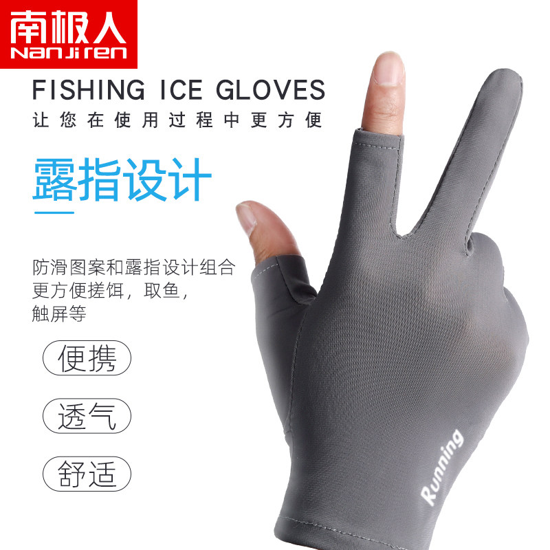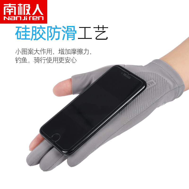 南极人夏季防晒钓鱼手套男士半指冰丝骑行二指快递薄开车手套女Z