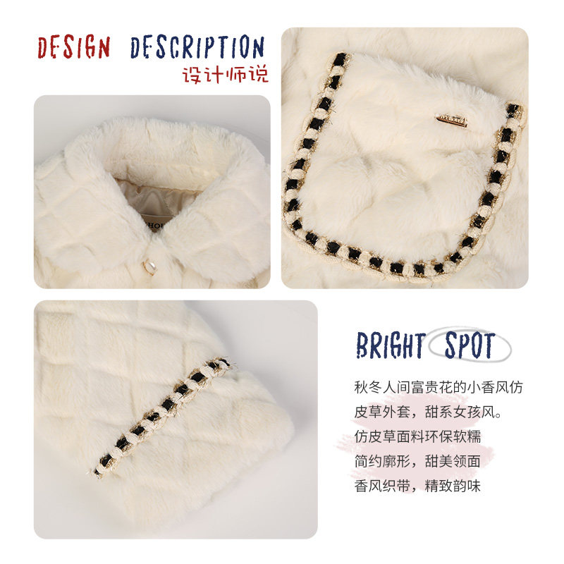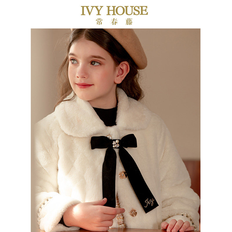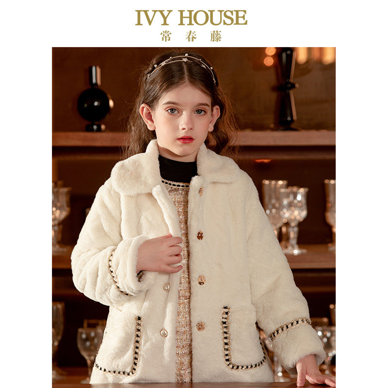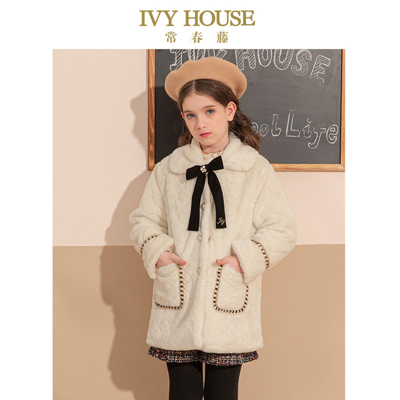 IVY HOUSE常春藤儿童装女童秋冬款 小香风仿皮草毛绒外套时尚淑女