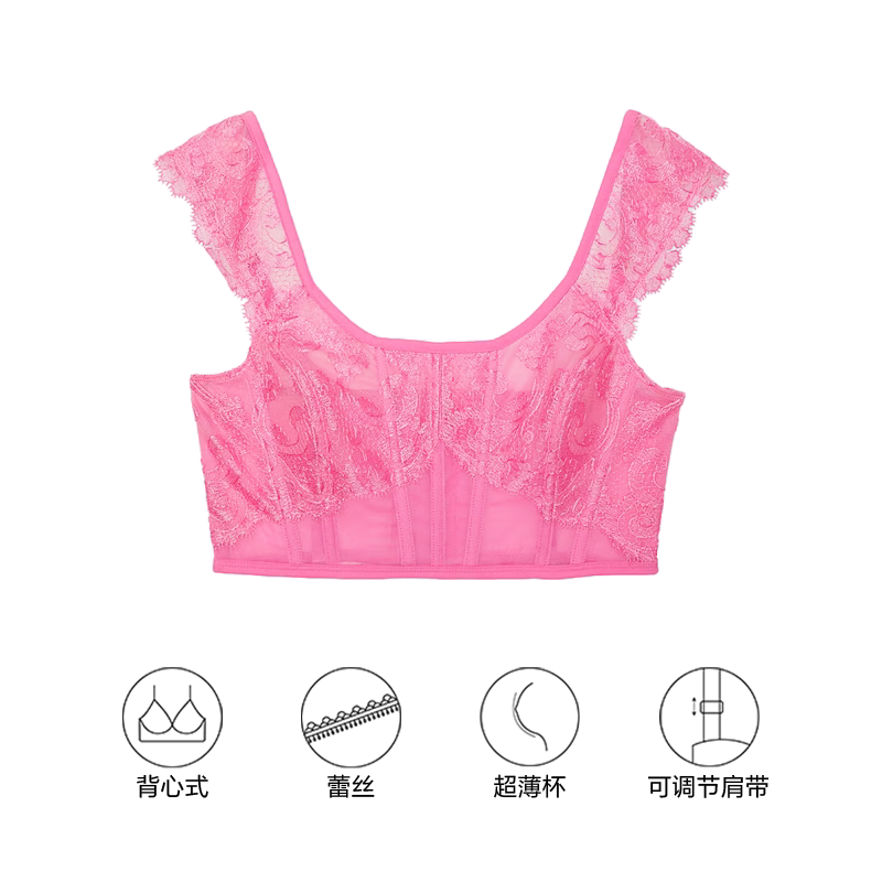 5折起|维密花漾蕾丝性感美背塑身衣鱼骨胸衣内衣女季薄款