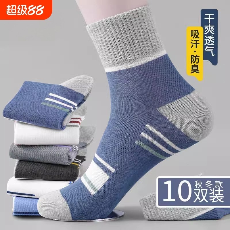 诸暨袜子男士秋冬季纯棉中筒袜透气吸汗防臭运动袜冬天休闲长筒袜
