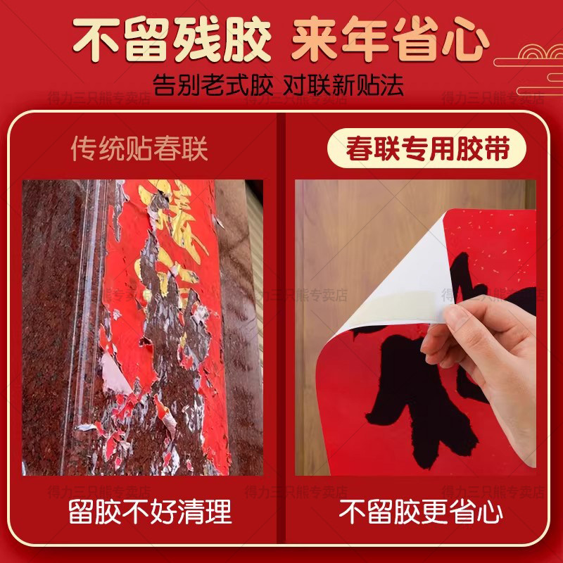 得力手可撕春联专用高粘度布基胶带无痕家用粘胶网格胶地毯透明易撕婚庆会场结婚用红胶带贴对联不留痕双面胶