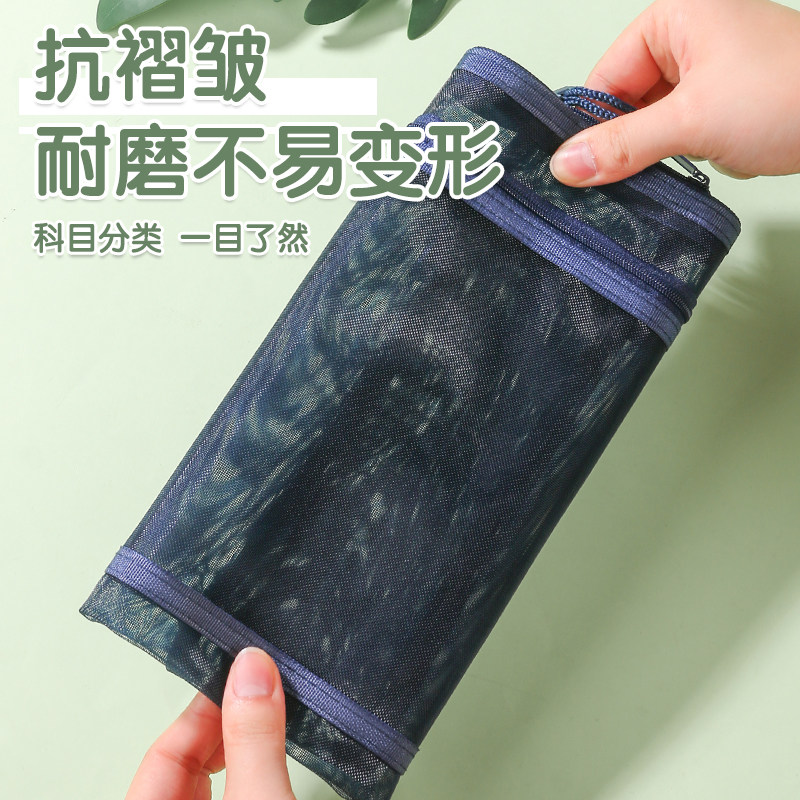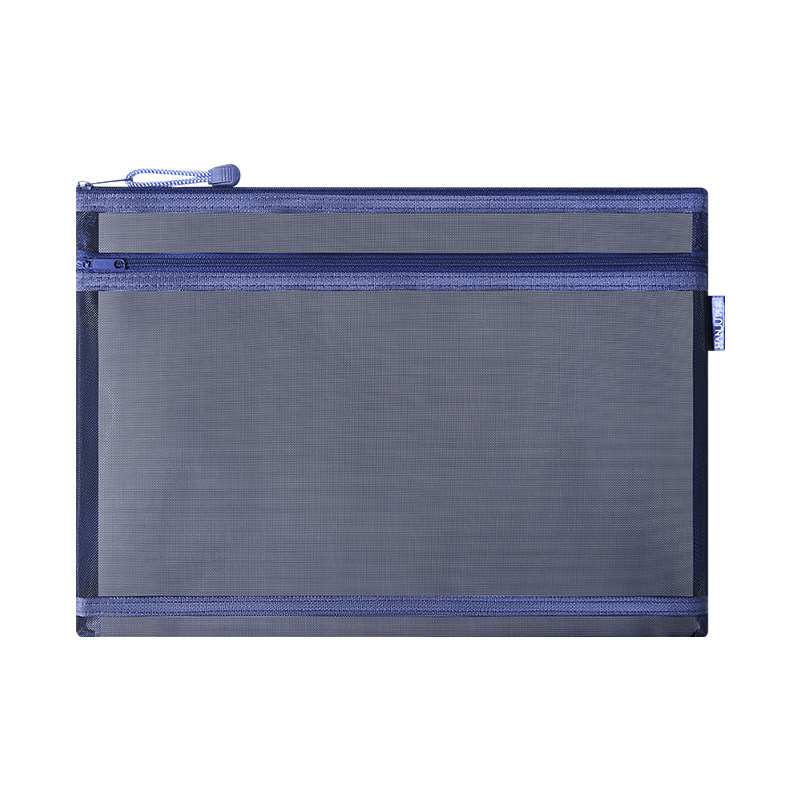 A4透明网格文件袋学生用A5双层网纱拉链袋简约复古产检资料收纳袋