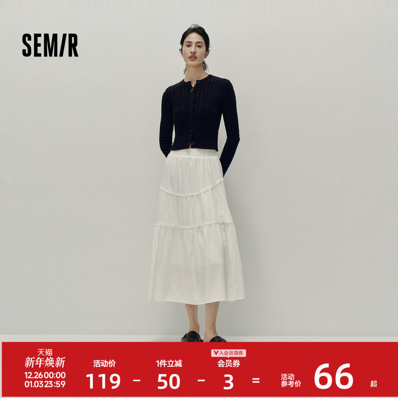 森马半身裙女高腰松紧腰宽松A字塔裙优雅显高秋花边长裙温柔甜美