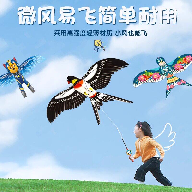 儿童手持动态钓鱼竿小风筝微风易飞小号迷你卡通燕子蝴蝶老鹰纸鸢