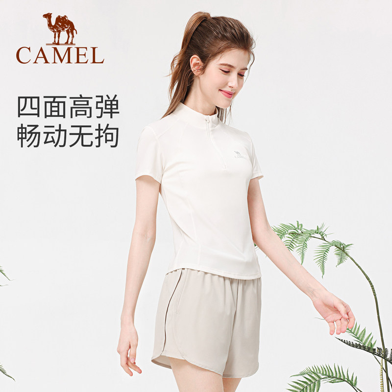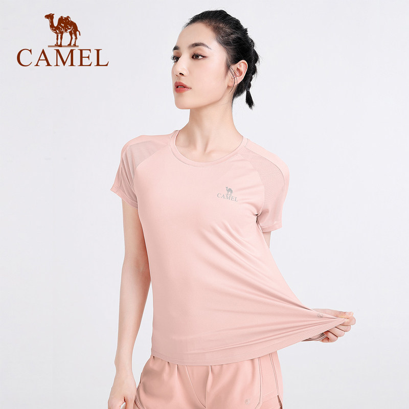 骆驼冰丝瑜伽服上衣女夏季薄款运动服短袖跑步T恤健身服快干衣服
